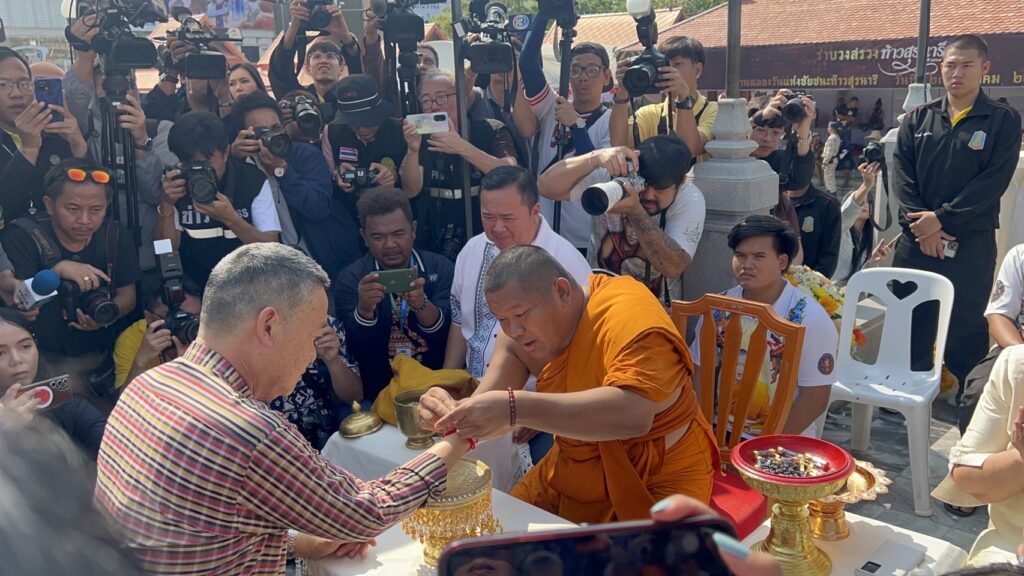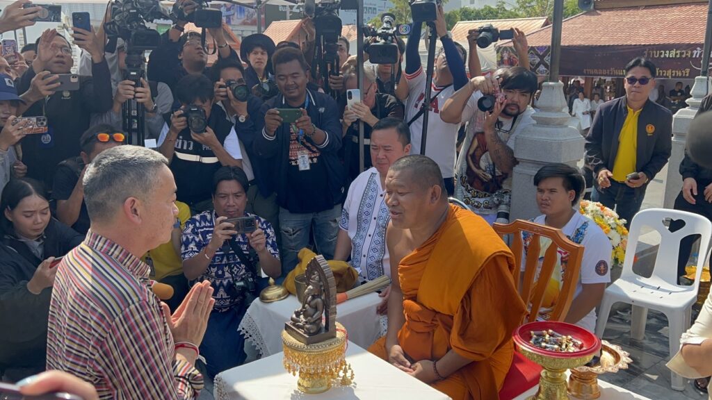 โดยเมื่อนายกรัฐมนตรี และคณะเดินทางมาถึงได้สักการะท้าวสุรนารี พร้อมบูชาเครื่องสักการะ เพื่อความเป็นสิริมงคล และยังเป็นช่วงการจัดงานวันฉลองแห่งชัยชนะท้าวสุรนารีประจำปี 2567 ก่อนที่จะกราบนมัสการพระครูวรนายกสิทธาคม ผู้ช่วยเจ้าอาวาส วัดพระนารายณ์มหาราชวรวิหาร ซึ่งพระครูุวรนายกสิทธาคมได้มอบพระพิฆเนศมหาคณปติศรีคเนศประทานพร จำลอง หน้าตัก 5 นิ้ว มีอายุเก่าแก่ที่สุด 1,300 ปีให้นายกรัฐมนตรี โดยพระครูฯ กล่าวว่า ขออนุญาตมอบให้ท่านมีแต่ความสำเร็จ ให้มีความเจริญ รุ่งเรือง ก่อนมอบเหรียญ หลวงปู่ศรี ซึ่งเป็นเกจิลูกศิษย์หลวงปู่มั่น มีพุทธคุณแคล้วคลาดปลอดภัย และให้นายกรัฐมนตรีโน้มตัวลงมาเพื่อเหน็บเหรียญให้ยังกระเป๋าเสื้อ รวมถึงได้มอบตะกรุดย่าโม ผูกสายสิญจน์ที่ข้อมือและประพรมน้ำมนต์ ก่อนที่นายกรัฐมนตรี จะรับมอบเหรียญหลวงพ่อคูน ปี 08 และฝากเครื่องรางให้นายกรัฐมนตรีและภริยาตั้งยังโต๊ะทำงานด้วย