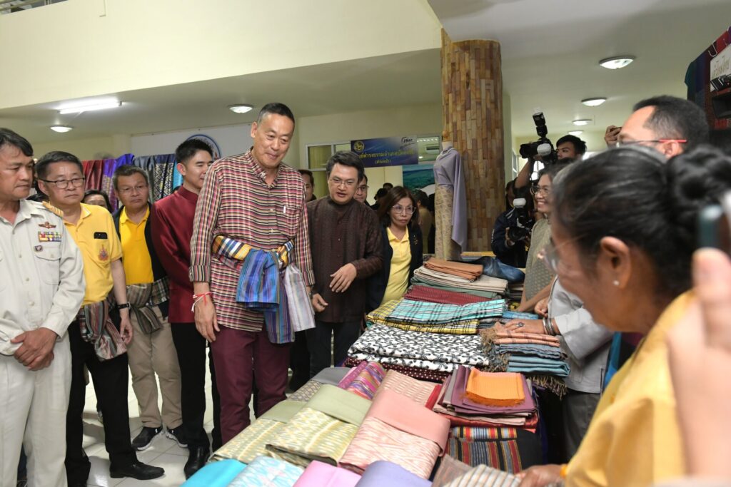 จากนั้นนายกรัฐมนตรี ได้เยี่ยมชมบูธผ้าไหมพื้นบ้านของ จ.นครราชสีมา พร้อมอุดหนุนผ้าหลายผืน เช่น ผ้าไหมมัดหมี่ลายโฮโลแกรม ลายแมว ลายประจำจังหวัดนครราชสีมาซึ่งเป็นครั่งสีธรรมชาติค 4 เมตร ราคา 10,000 บาท, ผ้าไหมไทบ้าน 2 ตะกอทอมือ สีเหลืองมะกรูด 4 เมตร ราคา 2,800 บาท, ผ้าไหมจีไอ สีแดง ทอมือ 2 ตะกอ 4 เมตรราคา 24,00 บาท แต่นายกรัฐมนตรีนำเงิน 3,000 บาท รวมไปถึงอุดหนุนเสื้อเชิ้ตผ้าไหมปักธงชัย ลายสก๊อตหลากสี ในราคา 1,900 บาท และเสื้อเชิ้ตผ้าไหมมัดย้อม สีชมพู ซึ่งจะนำไปใส่ในช่วงเทศกาลสงกรานต์ อีกด้วย