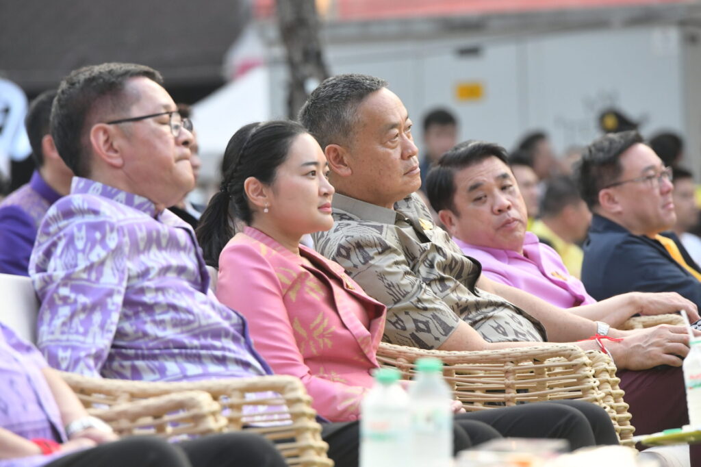 โดยนายกรัฐมนตรี สวมผ้าไหมปักธงชัย ลาย Korat Monogram (Pastel Color) หนึ่งใน Soft Power ของดีจังหวัดนครราชสีมา มาร่วมงานพร้อมรับชมการแสดงวีรชนบุปผชาติท้าวสุรนารี ก่อนที่จะรับฟังรายงานจาก จากนางสาวยลดา หวังศุภกิจโกศล นายกองค์การบริหารส่วนจังหวัดนครราชสีมา