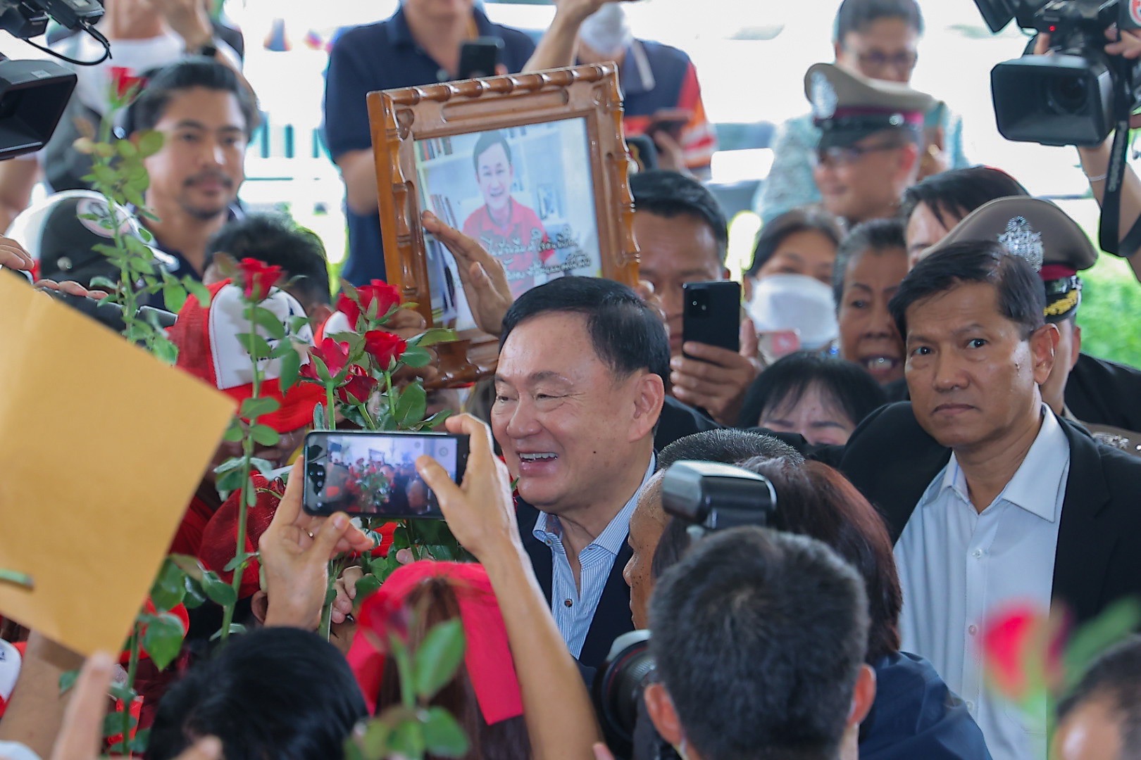 พรรคเพื่อไทย 26 มี.ค.-“ทักษิณ” กลับเข้าพรรคเพื่อไทยครั้งแรกในรอบ 17 ปี “แพทองธาร” รอรับ ด้านมวลชนหลั่งน้ำตา รุมล้อมทั้งกอดทั้งหอม ตะโกน “เรารักทักษิณ” ขณะที่ รมต.-แกนนำพรรค ร่วมต้อนรับ