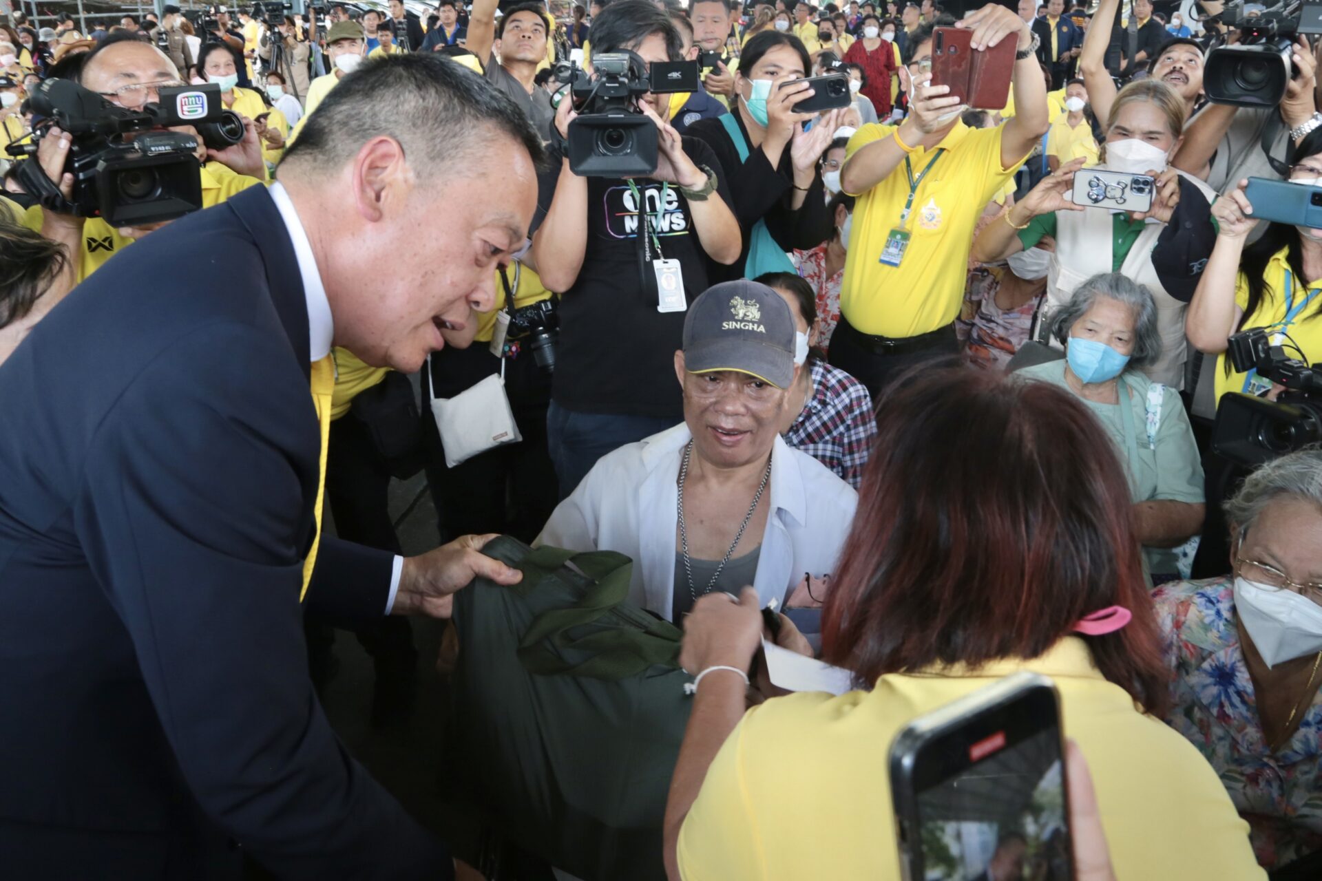 นายเศรษฐา ทวีสิน นายกรัฐมนตรีและรัฐมนตรีว่าการกระทรวงการคลัง ลงพื้นที่ตรวจเยี่ยมประชาชนเขตดินแดง พร้อมด้วยนายวราวุธ ศิลปอาชา รัฐมนตรีว่าการกระทรวงการพัฒนาสังคมและความมั่นคงของมนุษย์ นางพวงเพ็ชร ชุนละเอียด รัฐมนตรีประจำสำนักนายกรัฐมนตรี นายชัชชาติ สิทธิพันธุ์ ผู้ว่าราชการกรุงเทพมหานคร พล.ต.อ.กิตติ์รัฐ พันธุ์เพ็ชร์ รักษาการผู้บัญชาการตำรวจแห่งชาติ นายกันตพงศ์ รังษีสว่าง อธิบดีกรมส่งเสริมและพัฒนาคุณภาพชีวิตคนพิการ