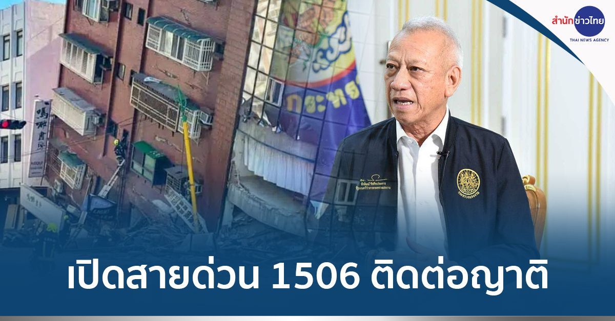 3 เม.ย.- “พิพัฒน์” เปิดสายด่วน 1506 ติดต่อญาติแรงงานไทยในไต้หวัน หลังเกิดเหตุแผ่นดินไหวขนาด 7.3 ล่าสุดแรงงานไทยปลอดภัยดี