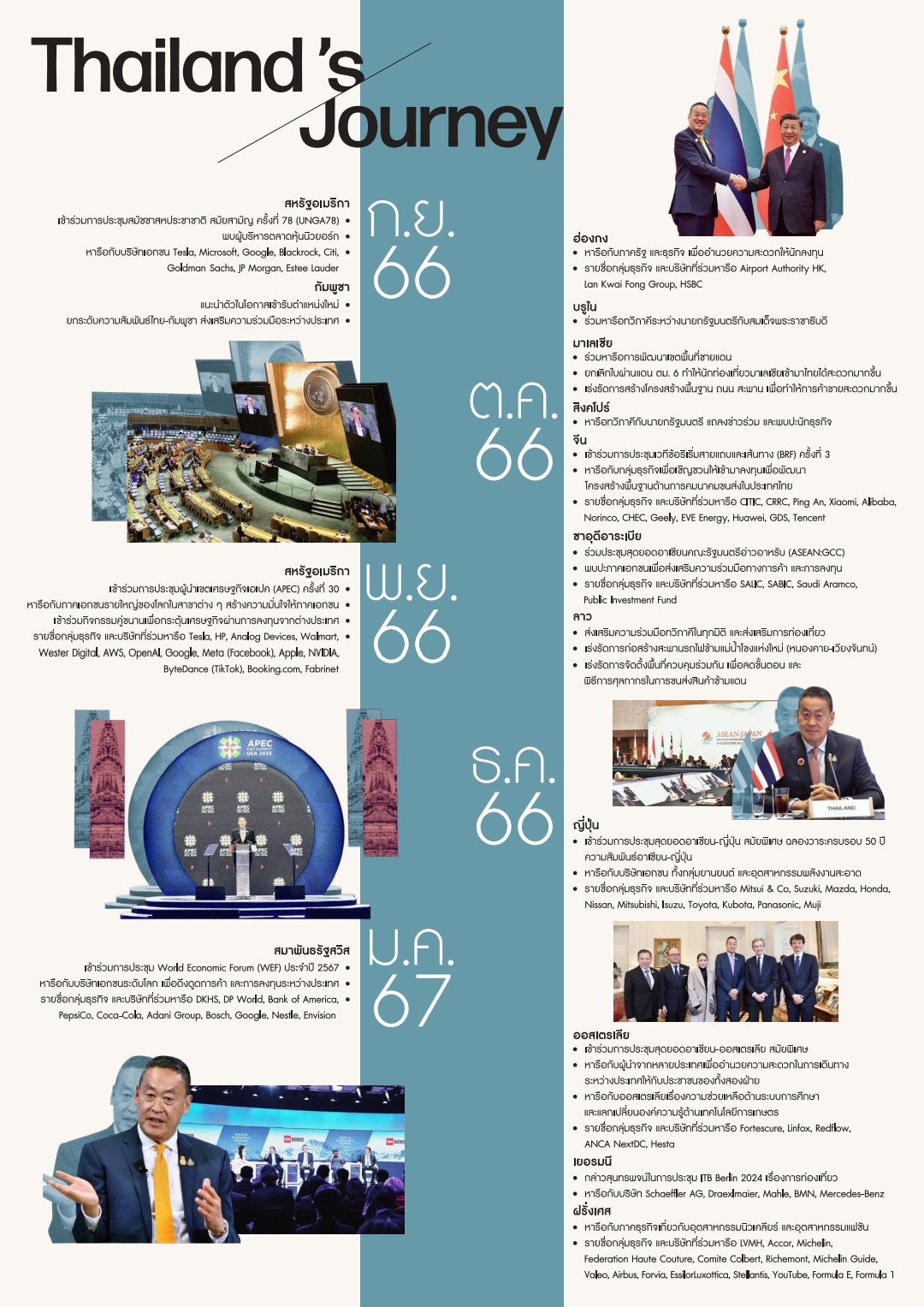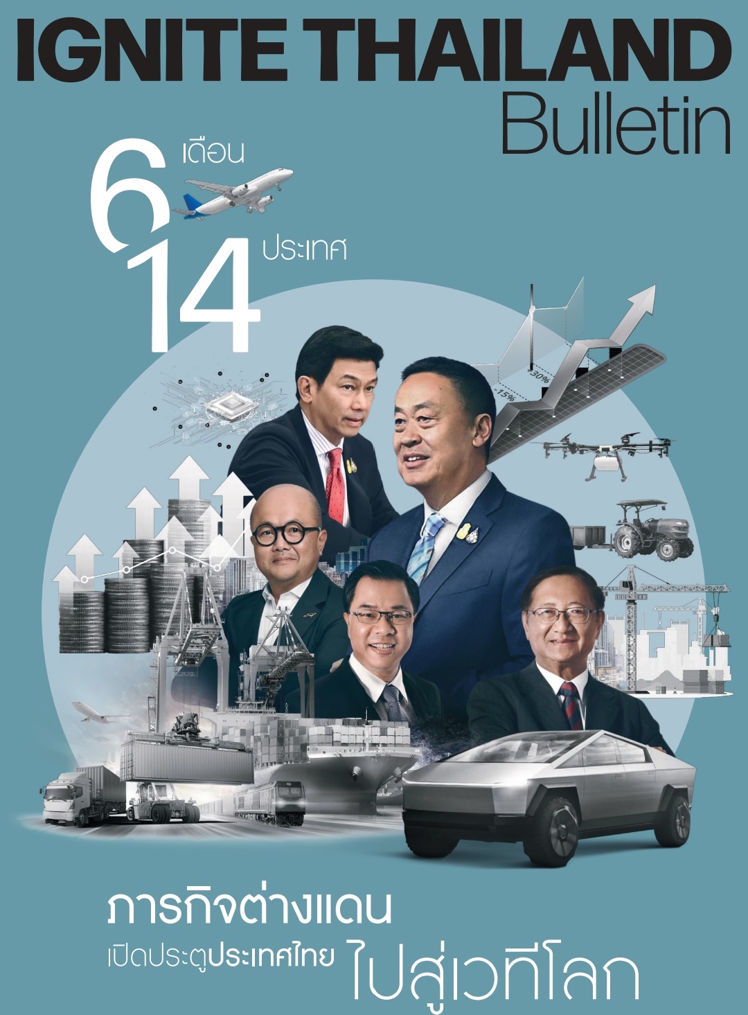 สำหรับเอกสารแท็บลอยด์ IGNIGHT THAILAND หน้าปก เป็นภาพนายกรัฐมนตรีพร้อมทีมเศรษฐกิจ ประกอบด้วย นายปานปรีย์ พหิทธานุกร รองนายกรัฐมนตรีและรัฐมนตรีว่าการกระทรวงการต่างประเทศ นพ.พรหมมินทร์ เลิศสุริย์เดช เลขาธิการนายกรัฐมนตรี ม.ล.ชโยธิต กฤดากร ประธานที่ปรึกนายกรัฐมนตร นายนฤตม์ เทอดสถีรศักดิ์ เลขาธิการบีโอไอ ส่วนเนื้อหา เป็นการสรุปสิ่งที่ได้รับจากการเดินทางเยือนต่างประเทศตั้งแต่เดือน ก.ย.2566 -ม.ค. 2567 โดยระบุถึงการเดินทางของรัฐบาลในช่วง 6 เดือนที่ผ่านมากับ 14 ประเทศ เพื่อเปิดประตูประเทศไทยไปสู่เวทีโลก