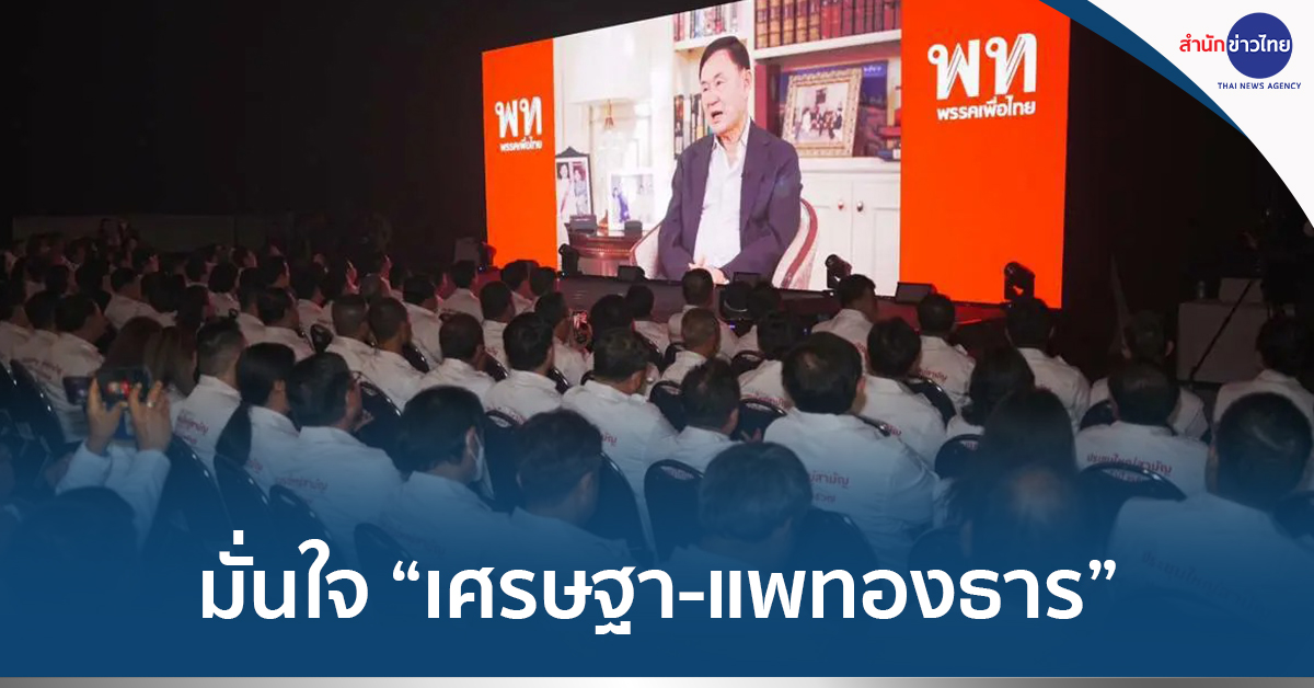 พรรคเพื่อไทย 5 เม.ย.-“เศรษฐา-แพทองธาร” ร่วมประชุมใหญ่เพื่อไทย “ทักษิณ” VTR ชี้ “เศรษฐา” เหมาะเป็นนายกฯ ในสถานการณ์เปลี่ยนผ่าน มอง “แพทองธาร” มี DNA ของพ่อ-แม่ มั่นใจทำได้ดี