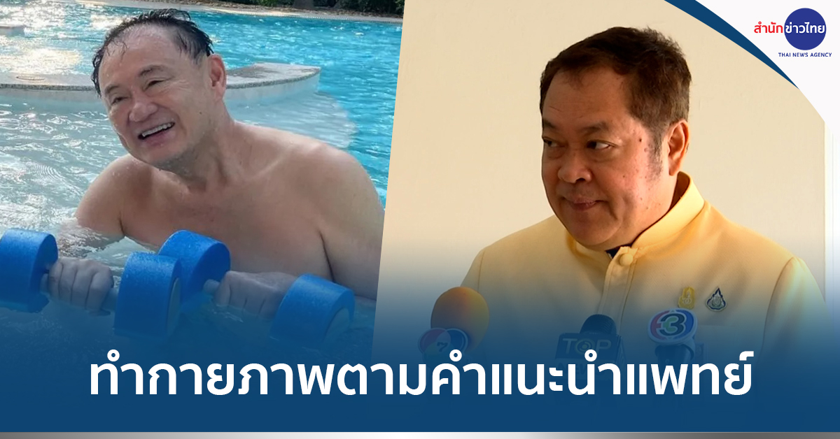 ทำเนียบรัฐบาล 9 เม.ย.-รมว.ยธ.ยัน “ทักษิณ” ป่วยจริง ยกดรัมเบลโฟมในน้ำเป็นการทำกายภาพตามคำแนะนำแพทย์ ฟื้นฟูร่างกายหลังผ่าตัดไหล่