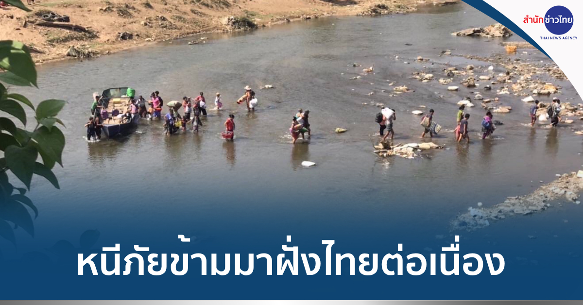 เมื่อเวลา 13.00 น.ที่ผ่านมา (20 เม.ย. 67) ผู้สื่อข่าวรายบรรยากาศบริเวณชายแดนไทย-เมียนมา ฝั่งตรงข้าม อ.แม่สอด จ.ตาก ที่มีการสู้รบฝั่งเมียนมา จังหวัดเมียวดี ระหว่างกองกำลังชนกลุ่มน้อยฝ่ายต่อต้านรัฐบาล กับทหารรัฐบาลเมียนมา มีประชาชนฝั่งประเทศเมียนมาข้ามมายังฝั่งประเทศไทย ตั้งแต่ช่วงเช้าที่ผ่านมามีประชาชนชาวเมียนมาข้ามมาแล้วกว่า 1,200 คน ทั้งนี้ เจ้าที่ทหารจากหน่วยเฉพาะกิจราชมนู (ฉก.ราชมนู) ตำรวจ และฝ่ายปกครอง ได้จัดพื้นที่ปลอดภัยชั่วคราวไว้ 2 จุด อยู่ที่บ้านวังตะเคียนใต้ ต.ท่าสายลวด อ.แม่สอด จ.ตาก