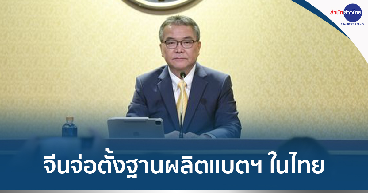 ทำเนียบ 21 เม.ย.-โฆษกรัฐบาลเผยผู้ผลิตแบตเตอรี่ระดับโลกจากจีนตอบรับมาตรการส่งเสริมการลงทุนไทย คาดร่วมตั้งฐานการผลิตมูลค่ากว่า 3 หมื่นล้านในไทยภายในปี 2567 ตอกย้ำแนวทางผลักดันไทยเป็นศูนย์กลางการผลิตยานยนต์แห่งอนาคตแบบครบวงจร