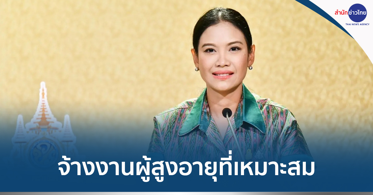 ทำเนียบ 22 เม.ย.- “รัดเกล้า” เผย รัฐบาลส่งเสริมการมีงานทำและส่งเสริมการจ้างงานผู้สูงอายุที่เหมาะสมกับวัยและประสบการณ์ เพื่อให้ผู้สูงอายุมีคุณภาพชีวิตที่ดี