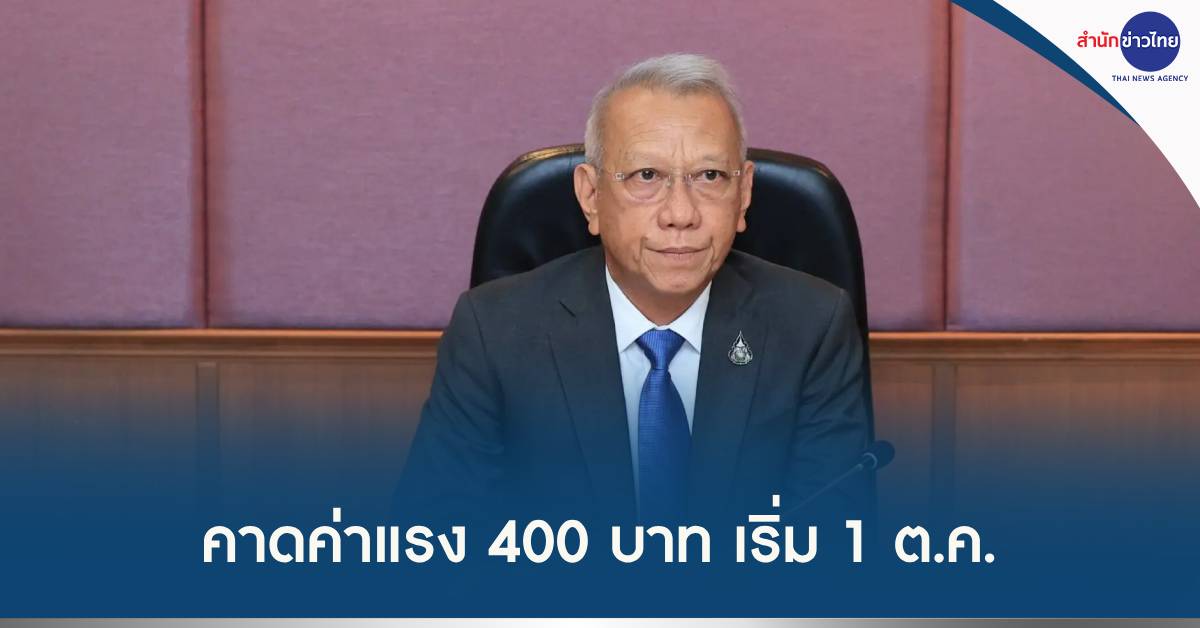 นายพิพัฒน์ รัชกิจประการ รัฐมนตรีว่าการกระทรวงแรงงาน กล่าวถึงการประกาศบิ๊กเซอร์ไพรส์ขึ้นค่าแรงขั้นต่ำ 400 บาท ว่า จากการประชุมของคณะกรรมการไตรภาคี เมื่อวันที่ 17 เมษายนที่ผ่านมา นายไพโรจน์ โชติกเสถียร ปลัดกระทรวงแรงงาน ในฐานะประธานคณะกรรมการไตรภาคี หารือกับคณะกรรมการว่า ปีนี้จะปรับขึ้นค่าแรงขั้นต่ำอีกครั้ง โดยวันที่ 14 พฤษภาคมนี้ จะประชุมคณะกรรมการอีกครั้งหนึ่ง และคาดว่าจะประกาศในวันที่ 1 ตุลาคม