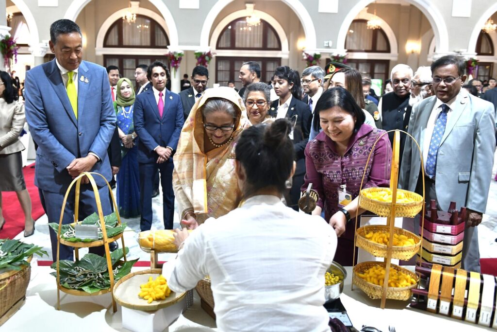 จากนั้นนายกรัฐมนตรีนำนายกรัฐมนตรีบังกลาเทศเยี่ยมชมนิทรรศการศิลปหัตถกรรมและหัตถศิลป์ พร้อมเป็นเจ้าภาพเลี้ยงอาหารกลางวันเพื่อเป็นเกียรติแก่นายกรัฐมนตรีสาธารณรัฐประชาชนบังกลาเทศ.-314.-สำนักข่าวไทย