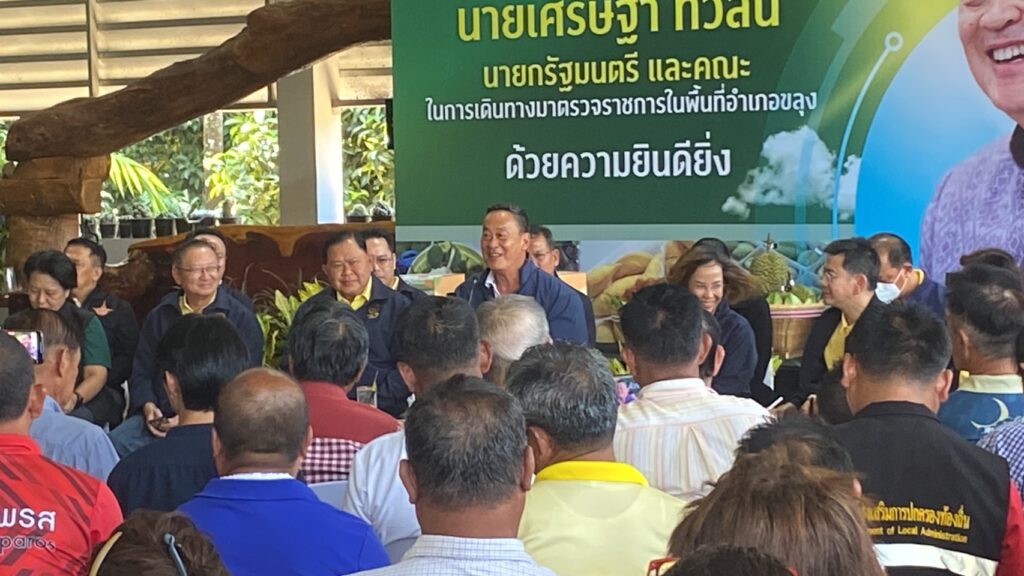 นายเศรษฐา กล่าวว่า รัฐบาลให้ความสำคัญผลไม้เพื่อการส่งออก เป็นนิมิตหมายอันดีที่จะรับฟังแก้ไขปัญหาให้กับเกษตรกร ซึ่งจากการรายงานปีนี้ น่าจะส่งออกทุเรียนมากกว่าปีที่ผ่านมา ซึ่งทุเรียนเป็นผลไม้หลักที่ส่งออกไปยังประเทศจีน โดยปริมาณเฉลี่ยการบริโภคคนจีนเฉลี่ย 0.7 กิโลกรัมต่อคน คนไทย 5 กิโลกรัมต่อคน และคนมาเลเซีย 11 กิโลกรัมต่อคน จึงต้องส่งเสริมปลูกทุเรียนเพิ่มอย่างต่อเนื่อง โดยคู่แข่งสำคัญของไทยคือเวียดนาม ซึ่งต้องพัฒนาทั้งระบบ เพื่อแข่งขันกับประเทศเวียดนามได้ ตนเองจึงให้ความสำคัญกับพืชเศรษฐกิจตรงนี้ ซึ่งกระทรวงเกษตรจะต้องมีมาตรการที่จะพัฒนาสายพันธุ์ต่อไป การแปรรูป รวมไปถึงใช้ปุ๋ย และยาฆ่าแมลงในการดูแลรักษาทุเรียนให้ได้คุณภาพ