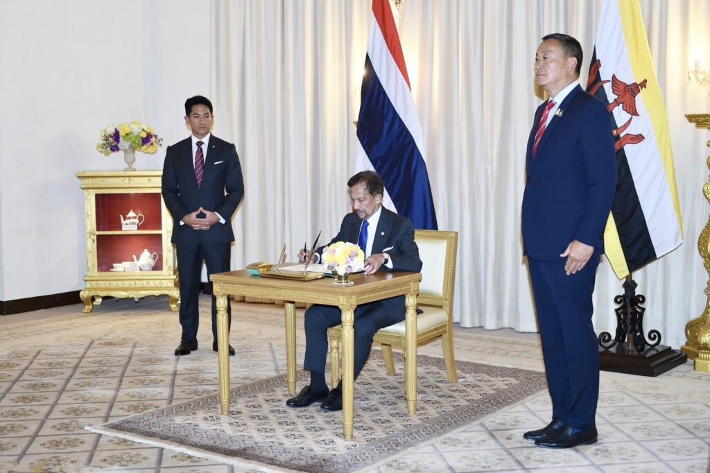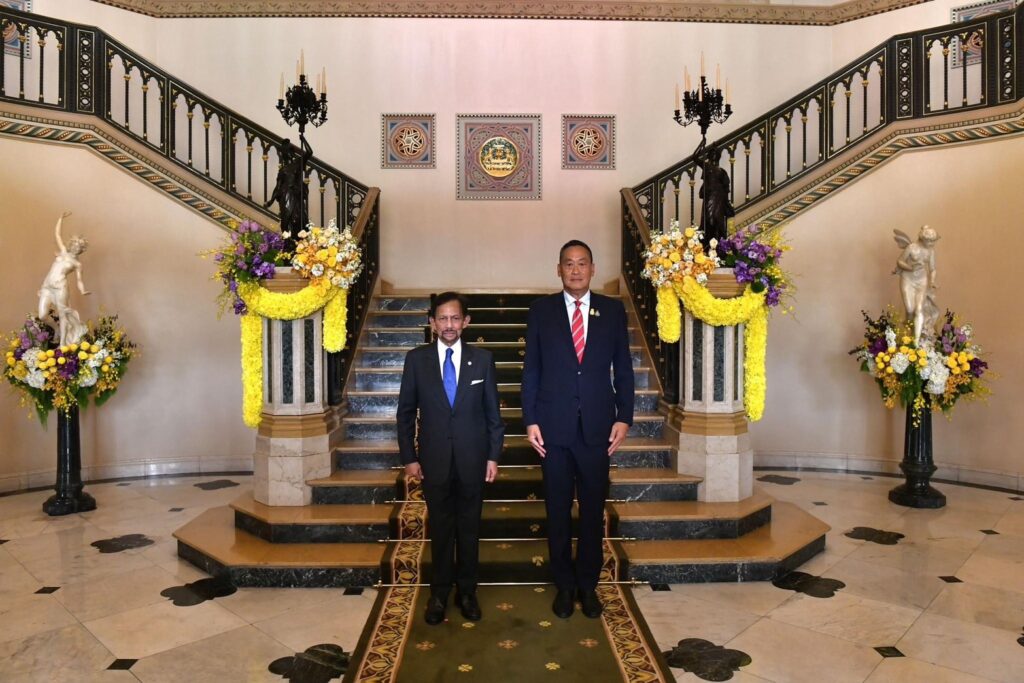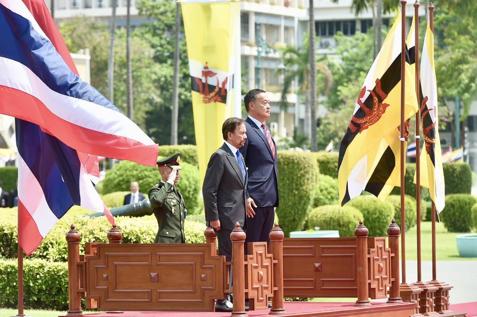 นายเศรษฐา ทวีสิน นายกรัฐมนตรี เฝ้าทูลละอองพระบาทรับเสด็จ สมเด็จพระราชาธิบดีฮาจี ฮัซซานัล บลเกียะฮ์ มูอิซซัดดิน วัดเดาละฮ์ (His Majesty Sultan Haji Hassanal Bolkiah Mu’izzaddin Waddaulah) แห่งบรูไนดารุสซาลาม ในโอกาสเยือนประเทศไทยอย่างเป็นทางการ ในฐานะแขกของรัฐบาล จากนั้น สมเด็จพระราชาธิบดีฯ ทรงร่วมพิธีตรวจแถวกองทหารเกียรติยศ และเสด็จฯ ไปยังห้องสีม่วง ตึกไทยคู่ฟ้า ซึ่งมีคณะรัฐมนตรีรอกราบบังคมทูลแนะนำตัวต่อสมเด็จพระราชาธิบดีฯ หลังจากนั้น นายกรัฐมนตรีกราบบังคมทูลเชิญสมเด็จพระราชาธิบดีฯ เสด็จฯ ไปยังห้องสีงาช้างด้านนอก เพื่อลงพระนามในสมุดเยี่ยม และทอดพระเนตรของที่ระลึกที่ทั้งสองฝ่ายจะมอบให้แก่กัน ก่อนไปยังตึกภักดีบดินทร์ เพื่อการหารือเต็มคณะ