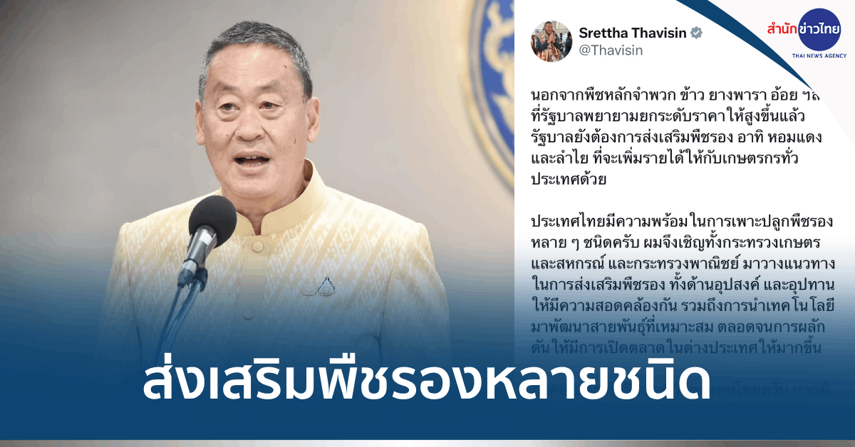 นายเศรษฐา ทวีสิน นายกรัฐมนตรี โพสต์ข้อความว่านอกจากพืชหลักจำพวก ข้าว ยางพารา อ้อย ที่รัฐบาลพยายามยกระดับราคาให้สูงขึ้นแล้ว รัฐบาลยังต้องการส่งเสริมพืชรอง อาทิ หอมแดง และลำไย ที่จะเพิ่มรายได้ให้กับเกษตรกรทั่วประเทศด้วย
