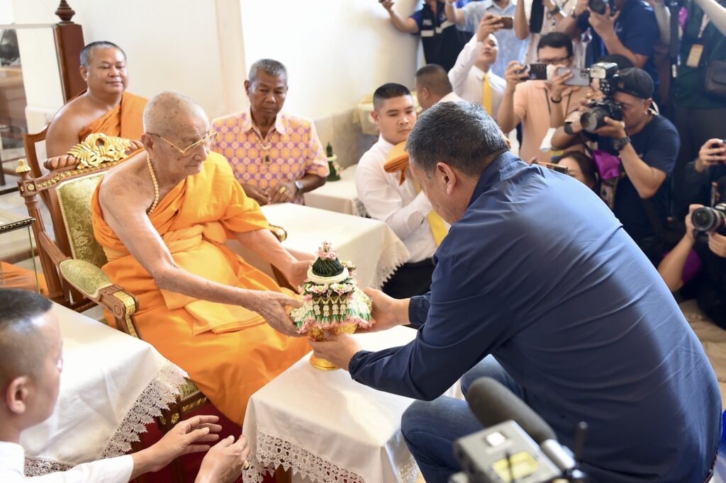 ทั้งนี้ ช่วงหนึ่งระหว่างการสนทนาธรรมกับพระธรรมพุทธิมงคล หรือหลวงพ่อสะอิ้ง ได้สอบถามนายกรัฐมนตรีว่า สบายดีไหม นายกรัฐมนตรีกล่าวตอบว่า “ครับ” จากนั้นได้มอบหลวงพ่อโตจำลอง พร้อมให้พรกับนายกรัฐมนตรีว่า “ให้โตไปเรื่อยๆ เหมือนชื่อหลวงพ่อโตที่มอบให้ ห้ามเล็กลง”