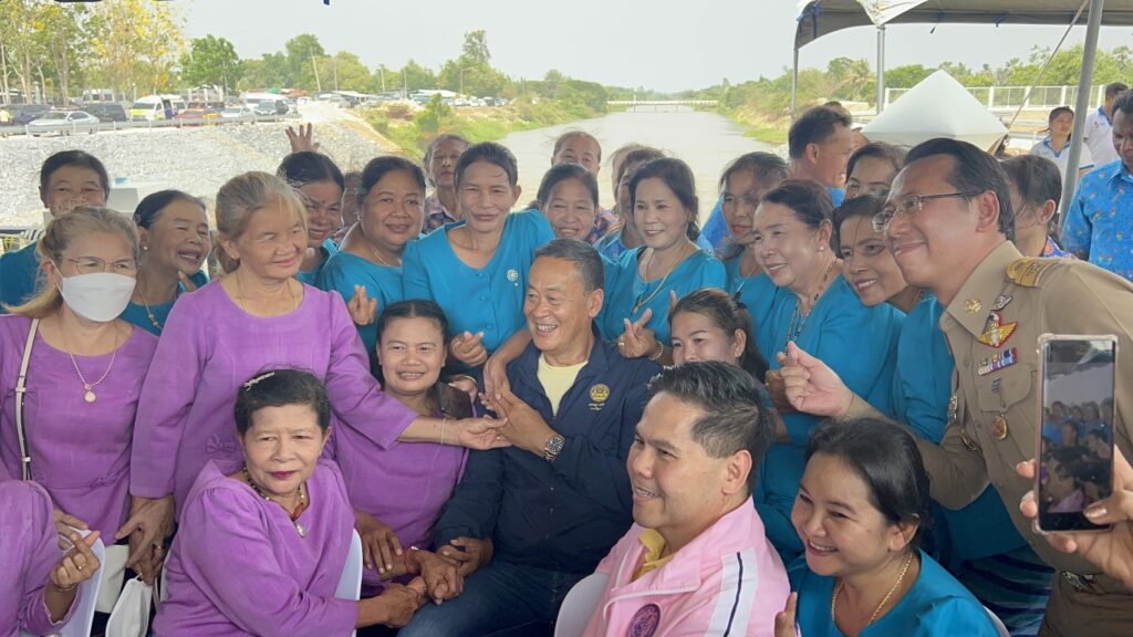 โดยเมื่อนายกรัฐมนตรี เดินทางมาถึงได้แวะทักทายและถ่ายรูปกับประชาชน จากนั้นจึงรับฟังการรายงานจากสำนักงานทรัพยากรน้ำแห่งชาติ หรือ สทนช. ก่อนที่จะถ่ายรูปร่วมกับประชาชนในพื้นที่ที่มารอให้การต้อนรับอีกครั้งหนึ่งอย่างเป็นกันเอง โดยนายวราวุธ กล่าวแซว ประชาชนว่า มารับนายกรัฐมนตรีวันนี้ว่าแต่งตัวสวยเป็นพิเศษ ถ่ายรูปกับนายกรัฐมนตรีทำไมเงียบจัง รักนายกหรือไม่ ทำให้ประชาชนต่อเป็นเสียงเดียวกันว่า “รัก” ซึ่งสร้างรอยยิ้มจากนายกรัฐมนตรีและประชาชน