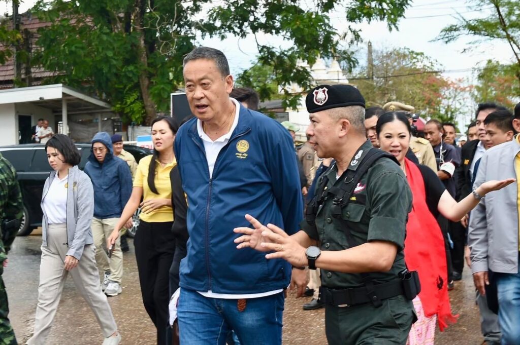 นายเศรษฐา ทวีสิน นายกรัฐมนตรี พร้อมด้วยนายสุทิน คลังแสง รัฐมนตรีว่าการกระทรวงกลาโหมนายเสริมศักดิ์ พงษ์พานิช รัฐมนตรีว่าการกระทรวงการท่องเที่ยวและกีฬา นายจุลพันธุ์ อมรวิวัฒน์ รัฐมนตรีช่วยว่าการกระทรวงการคลัง นายสุรพงษ์ ปิยะโชติ รัฐมนตรีช่วยว่าการกระทรวงคมนาคม ขึ้นเฮลิคอปเตอร์จากกองพลทหารราบที่ 9 ตำบลลาดหญ้า ไปยัง สนามจอด ฮ. ร้อย ตชด.134 ต.หนองลู อ.สังขละบุรี และเวลา 14.55 น. นายกรัฐมนตรี เดินทางต่อด้วยขบวนรถยนต์มายังจุดผ่อนปรนทางการค้าด่านพระเจดีย์สามองค์ เพื่อตรวจเยี่ยมสถานการณ์การค้าชายแดน ซึ่งปรากฏว่าได้มีฝนตกลงมาอย่างหนัก ต้อนรับคณะนายกรัฐมนตรี