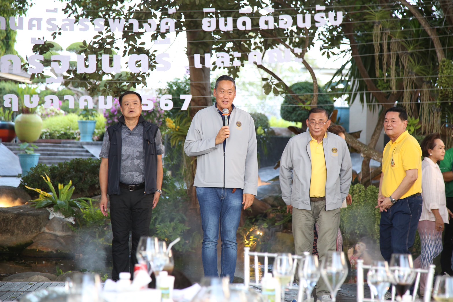 ขณะที่นายกรัฐมนตรี ระบุว่า วันนี้รู้สึกอบอุ่นใจเป็นอย่างมาก แม้ว่าเราจะอยู่คนละพรรค แต่เราก็ทราบว่ามีความผูกพันกันมาอย่างยาวนาน จริงๆ แล้วเราอยู่กันมาตั้งแต่ตอนที่ตนจะเข้าการเมือง ฟังเรื่องเล่าจากผู้ใหญ่ของพรรคที่อยู่บนเวทีนี้ ก็มีความผูกพันกันมาอย่างยาวนาน รวมไปถึงวันนี้ก็มีความเป็นปึกแผ่นเหนียวแน่น 314 เสียง และแม่บ้านของนายนภินทร มาบอกตนว่า ขอให้อยู่นานๆ แต่ตนบอกว่าต้องไปเพชรบุรีแล้ว แม่บ้านท่านบอกว่าไม่ใช่ ขอให้เป็นนายกรัฐมนตรีไปนานๆ ตนก็บอกว่า ต้องบอกนายนภินทรช่วยสนับสนุนตนให้อยู่ตลอดไป เพราะจริงๆ แล้วเราก็เป็นพรรคร่วมรัฐบาล ทำงานร่วมกันมาได้ดี ให้เกียรติซึ่งกันและกันมาโดยเสมอ ก็ให้คำแนะนำ และเป็นกำลังสำคัญของรัฐบาลนี้มาโดยตลอด ทำภารกิจช่วยเหลือประชาชน ยังมีอีกเยอะมาก ต้องช่วยเหลือกันในเรื่องความเดือดร้อน ไม่ว่าจะเป็นพื้นฐานการบริหารจัดการน้ำ พื้นที่ทำกิน ก็เป็นเรื่องที่รัฐบาลให้ความสำคัญ