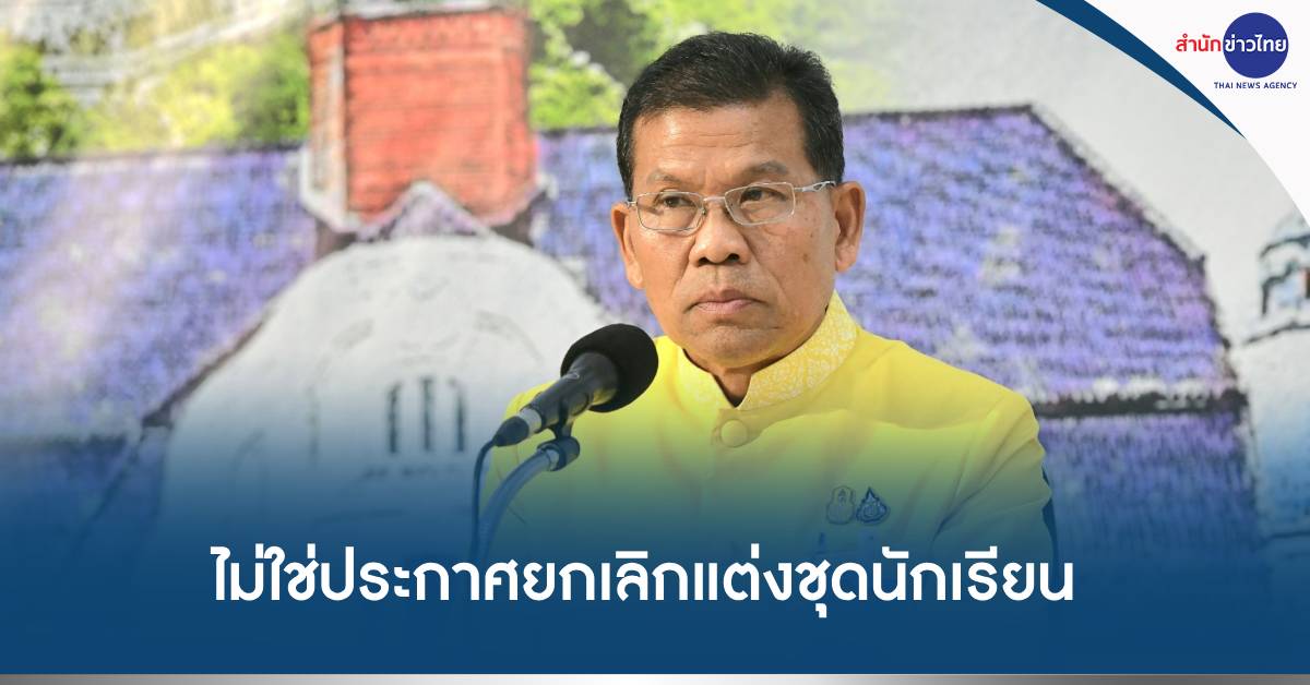 กทม. 19 พ.ค.-รัฐบาลแจง ก.ศึกษาธิการ ไม่ได้สั่งประกาศยกเลิกแต่งชุดนักเรียน ขอประชาชนอย่าหลงเชื่อ ย้ำเป็นการยกเว้นหรือผ่อนผัน เพื่อลดค่าใช้จ่าย