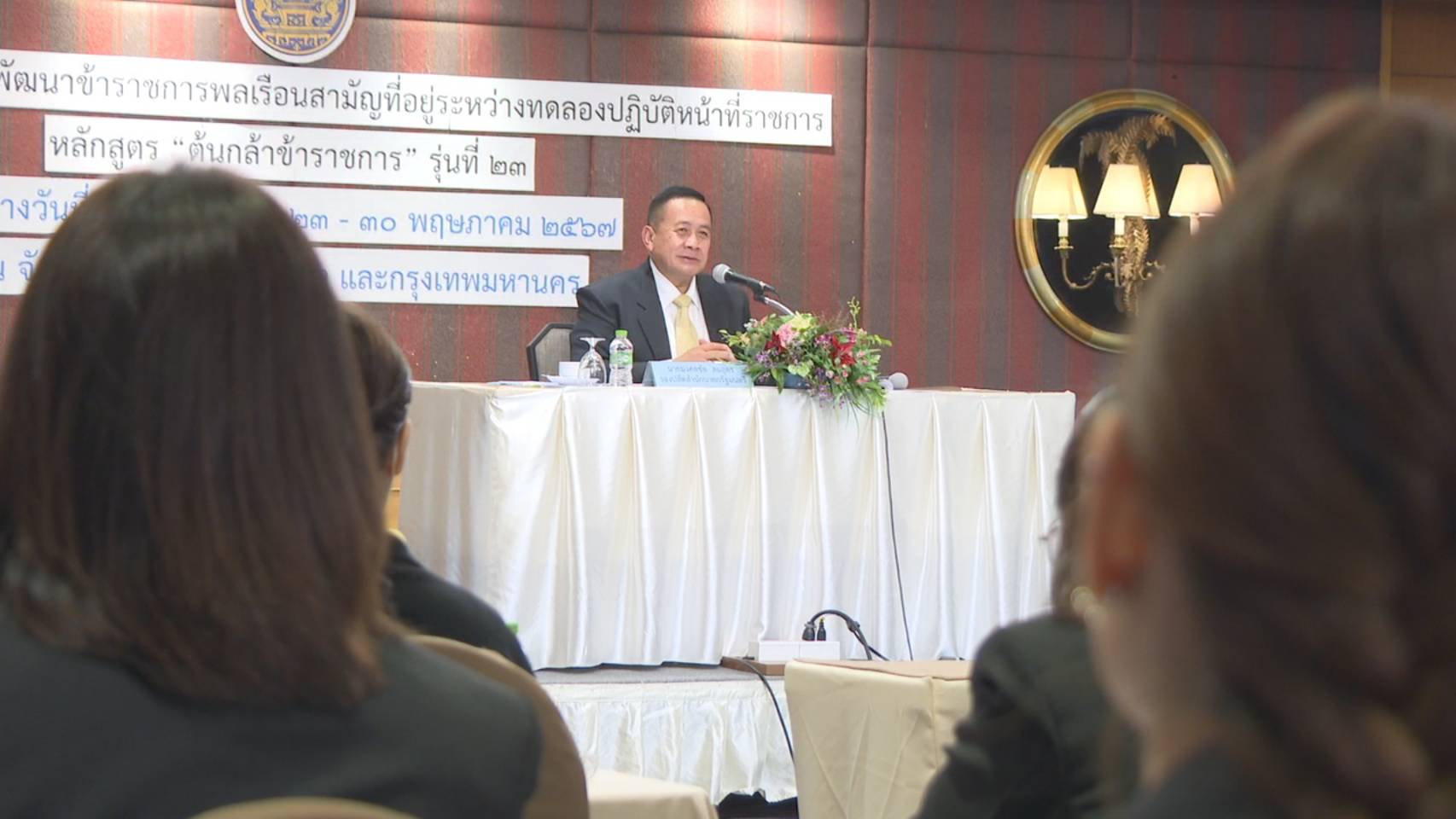 “สิ่งสำคัญของการเป็นข้าราชการที่ดี ต้องเริ่มจากตัวข้าราชการเป็นสำคัญ สิ่งที่เราปลูกฝังในให้ในวันนี้คือคุณลักษณะสำคัญของการเป็นข้าราชการที่ดี อันดับแรก ต้องเป็นคนดี ต้องยึดหลักแนวทางคำสั่งสอนของแต่ละศาสนาเป็นสำคัญ ข้าราชการต้องเป็นผู้ที่มีความสามารถในการนำความรู้และประสบการณ์มาขับเคลื่อนนโยบายของรัฐบาลให้ประสบความสำเร็จ อีกประการหนึ่งที่สำคัญคือ ข้าราชการต้องมีความสุขในการทำงาน เพราะฉะนั้นทั้ง 3 คุณสมบัติจะเป็นพื้นฐานต้นกล้าสำคัญของการเป็นข้าราชการที่ดี ซึ่งจะทำให้การดำเนินประสบความสำเร็จ” รองปลัดสำนักนายกรัฐมนตรี กล่าว