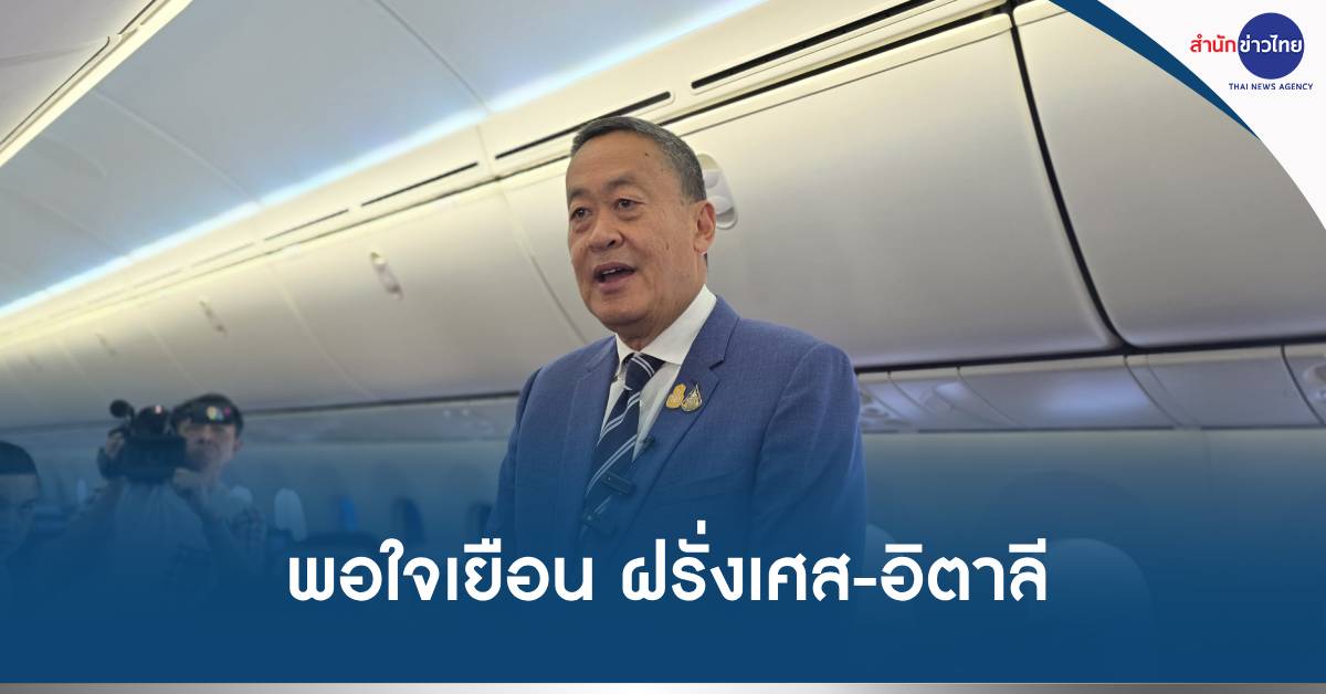 ญี่ปุ่น 22 พ.ค.-นายกฯ พอใจเดินสายยุโรป เผย 2 นายกฯ ฝรั่งเศส-อิตาลี มั่นใจการเมืองไทย หลังผ่านการเลือกตั้งตามระบอบประชาธิปไตย ขณะที่นายกฯ อิตาลี รับปากเตรียมเดินทางเยือนไทย ก.พ.68 พร้อมเที่ยวภูเก็ต เจรจาอียูหนุนยกเว้นวีซ่าเชงเกนไทย เหตุคนไทยประวัติดี ไม่มีหลบหนี บอกข่าวดี เปิดเที่ยวบินกรุงเทพฯ-มิลาน ดีเดย์ 1 ก.ค.นี้ เล็งเยือนอินเดีย-แอฟริกา-ตุรกี