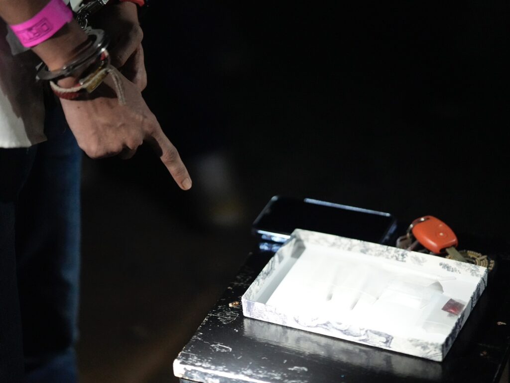 นอกจากนี้ คุมตัวนักเที่ยวออกมาตรวจสอบสิ่งผิดกฎหมายภายในตัวรถ พบนักเที่ยวทราบชื่อคือนายธนนันท์ อายุ 23 ปี เป็นอาวุธปืนขนาด 11 มม.พร้อมเครื่องกระสุน 9 นัด และกระบอกที่สองเป็นอาวุธปืนขนาด 9 ม.ม.พร้อมเครื่องกระสุนจำนวน 10 นัด เป็นของนายภูวไนย อายุ 30 ปี ซุกซ่อนอยู่ในรถยนต์ โดยอ้างว่าพกติดรถไว้ป้องกันตัว บางรายยังพบยาเสพติดซุกซ่อนไว้ในรถอีกด้วย