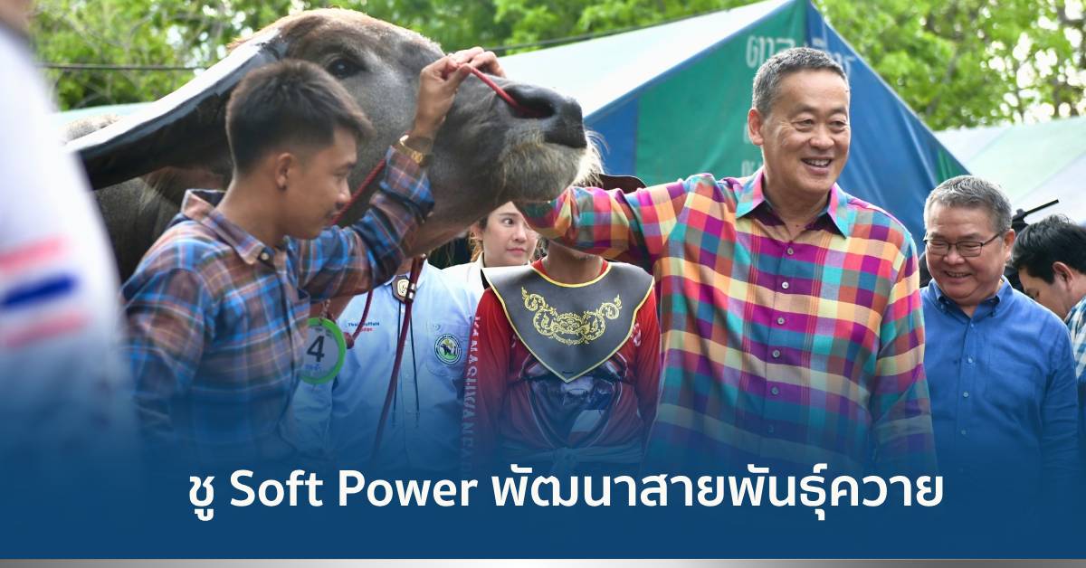 “รัฐบาลมุ่งมั่นขับเคลื่อนนโยบาย Soft Power ของประเทศในทุกมิติ เพื่อเป็นกลไกสำคัญที่ช่วยยกระดับและพัฒนาความสามารถในการแข่งขันของประเทศ โดยควายไทยถือเป็นอีกหนึ่ง Soft Power สำคัญที่อยู่คู่กับสังคมไทยมาอย่างยาวนาน ซึ่งนายกรัฐมนตรีได้เล็งเห็นว่าอุตสาหกรรมควายไทยจะเป็นอุตสาหกรรมที่สามารถสร้างรายได้ให้เกษตรกรได้อย่างยั่งยืน และช่วยเพิ่มมูลค่าทางเศรษฐกิจให้กับประเทศได้” โฆษกประจำสำนักนายกรัฐมนตรี กล่าว. -314 สำนักข่าวไทย