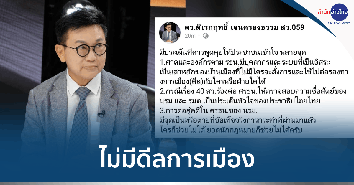 วันนี้ (2 มิ.ย. 67) ผู้สื่อข่าวรายงานว่า นายดิเรกฤทธิ์ เจนครองธรรม สมาชิกวุฒิสภา ได้โพสต์เฟซบุ๊ก ระบุว่า มีประเด็นที่ควรพูดคุยให้ประชาชนเข้าใจ หลายจุด