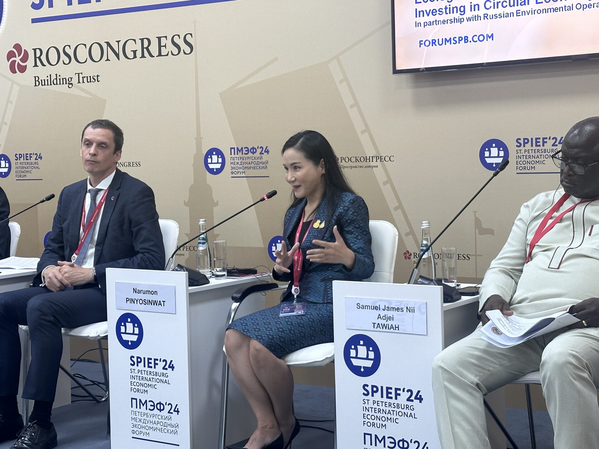 รัสเซีย 6 มิ.ย.-“นฤมล” โชว์วิสัยทัศน์บนเวที SPIEF ย้ำไทยขับเคลื่อนโมเดลเศรษฐกิจชีวภาพ เศรษฐกิจหมุนเวียน และเศรษฐกิจสีเขียวเพื่อการพัฒนาอย่างยั่งยืน เดินหน้าผลักดันให้ไทย “เป็นครัวสีเขียวของโลกและศูนย์กลางเศรษฐกิจชีวภาพของเอเชีย”