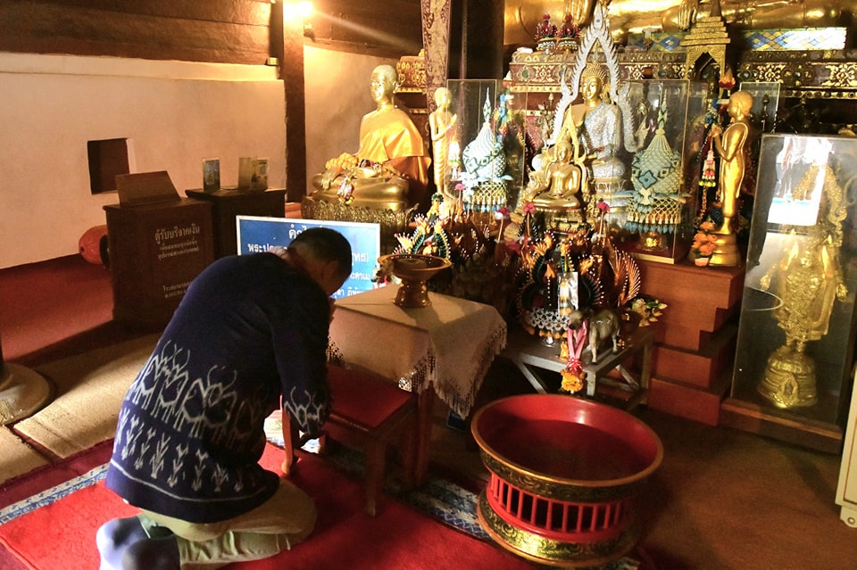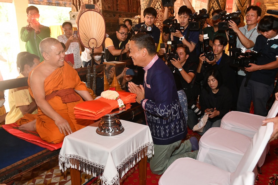 จากนั้นเจ้าอาวาสได้มอบองค์พระธาตุจำลองลำปางหลวง ซึ่งเป็นพระธาตุประจำปีเกิดปีฉลู ตามความเชื่อของชาวล้านนา พร้อมเหรียญพระแก้วมรกตดอนเต้า ซึ่งถือเป็นพระคู่บ้านคู่เมืองของ จ.ลำปาง และพระรอดลำปางหลวง ซึ่งทำมาจากเนื้อเงินและเนื้อทอง ที่ทำมาจากส่วนที่เหลือที่หุ้มพระธาตุ ในการบูรณะเมื่อปี 2550 ให้กับนายกรัฐมนตรี จากนั้นเจ้าอาวาสได้สวดให้พรนายกรัฐมนตรี ประสบความสำเร็จในการบริหารราชการแผ่นดิน
