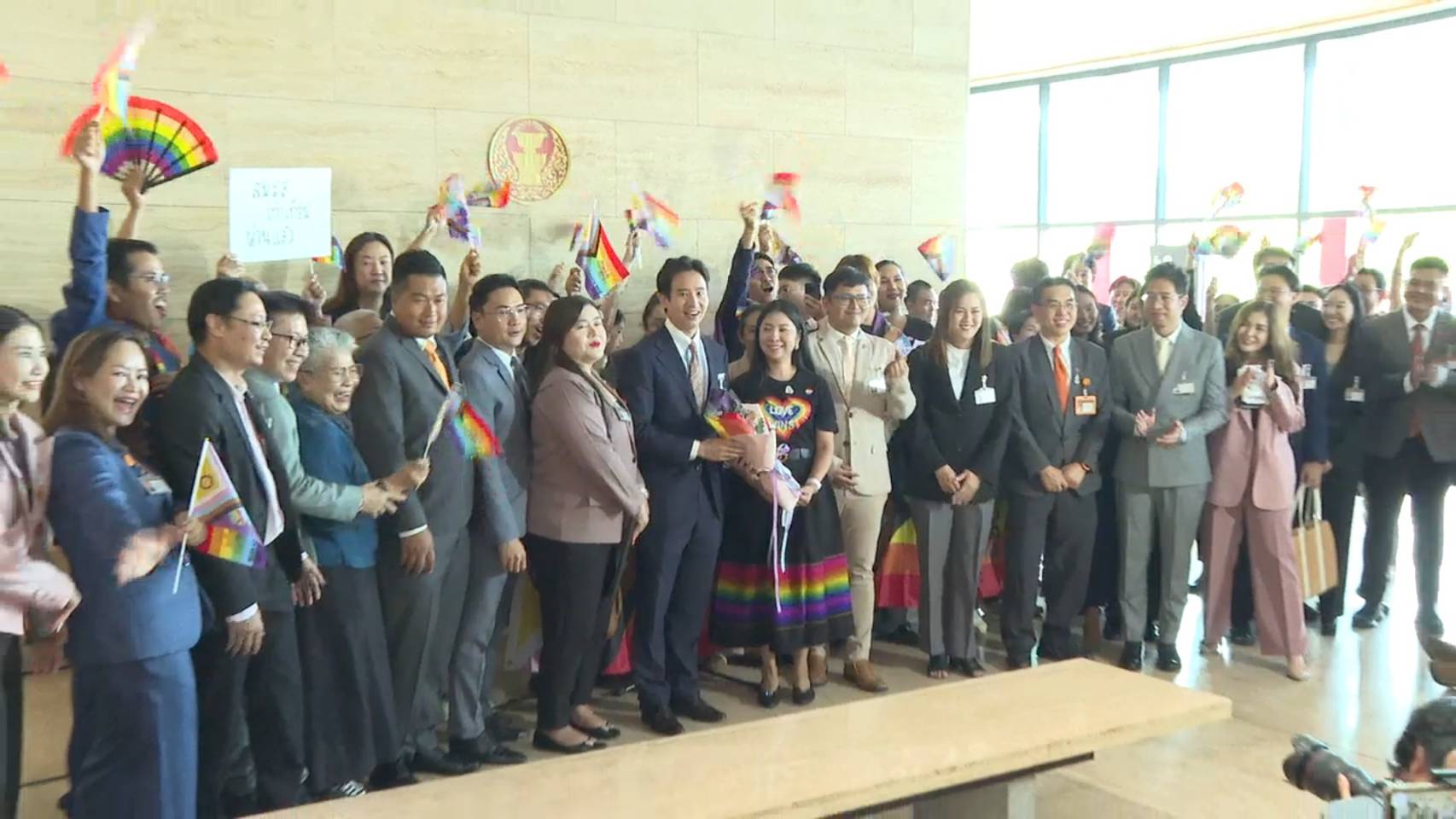 รัฐสภา 18 มิ.ย.- LGBTQIAN+ พร้อม สส.ก้าวไกล ร่วมฉลองความสำเร็จ หลัง “วุฒิสภา” คลอด กม.สมรสเท่าเทียมแล้ว รอบังคับใช้หลังประกาศราชกิจจาฯ 120 วัน