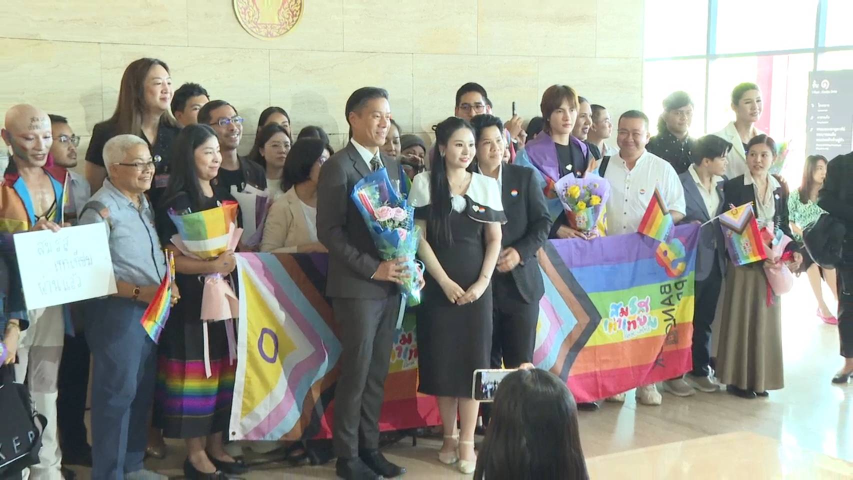 ผู้สื่อข่าวรายงานว่า ภายหลังจากที่ประชุมวุฒิสภาให้ความเห็นชอบกฎหมายสมรสเท่าเทียม กลุ่มเครือข่าย LGBTQIAN+ และภาคประชาชนได้มอบดอกไม้ เพื่อแสดงความขอบคุณให้กับนายวัลลภ ตังคณานุรักษ์ ประธานกรรมาธิการพิจารณาร่างพระราชบัญญัติ (พ.ร.บ.) แก้ไขเพิ่มเติมประมวลกฎหมายแพ่งและพาณิชย์ (ฉบับที่ … ) พ.ศ. … หรือกฎหมายสมรสเท่าเทียม วุฒิสภา และตัวแทนพรรคการเมือง อาทิ นายพิธา ลิ้มเจริญรัตน์ ที่ปรึกษาหัวหน้าพรรคก้าวไกล กล่าวย้ำว่า การผ่านร่างกฎหมายครั้งนี้ ทำให้เห็นว่าการเมืองมีความเป็นไปได้ ไม่มีอะไรยิ่งใหญ่ไปกว่าประชาชน พร้อมชื่นชมทุกคนที่ช่วยกันเป็นแรงผลักดัน หลังจากนี้ยังคงต้องร่วมกันเดินหน้าขับเคลื่อนกระบวนการต่างๆ ก่อนมีผลบังคับใช้ภายใน 120 วัน และวันนี้ถือเป็นวันเริ่มต้นชัยชนะของประเทศไทย