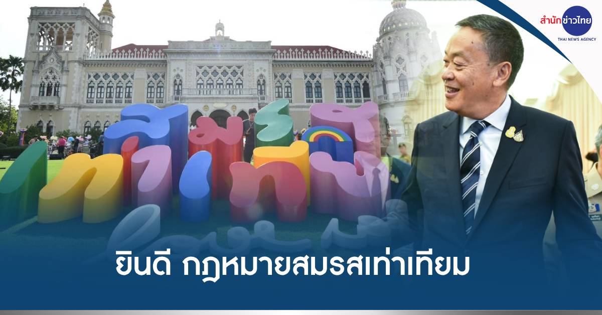 นายเศรษฐา ทวีสิน นายกรัฐมนตรี โพสต์ข้อความผ่าน X แสดงความยินดีหลังผ่านกฎหมายสมรสเท่าเทียม ใจความว่า