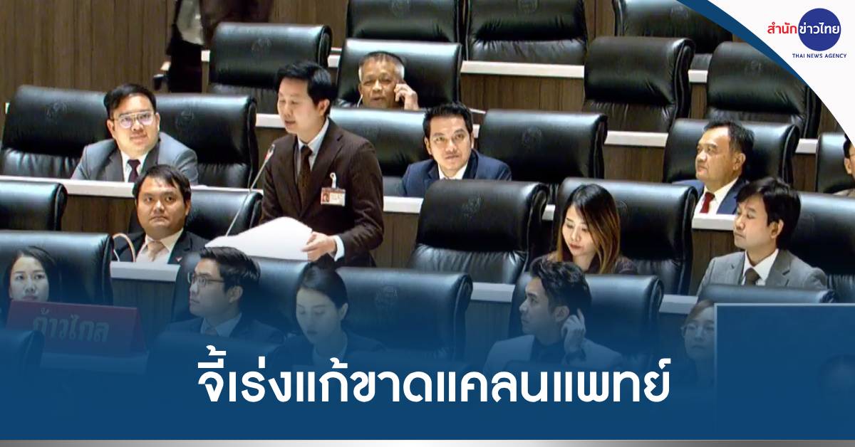 รัฐสภา 20 มิ.ย.-สส.ฝ่ายค้าน ท้วงงบ สธ. จี้เร่งแก้ปัญหาขาดแคลนแพทย์ จ่ายเงินอุดหนุนรถกู้ภัย ด้าน “สมศักดิ์” รมว.สธ. แจงเร่งเพิ่มรถกู้ภัยทุกตำบลรองรับดูแลประชาชน แย้มแนวคิดพาสาธารณสุขออกจากระบบ ก.พ.