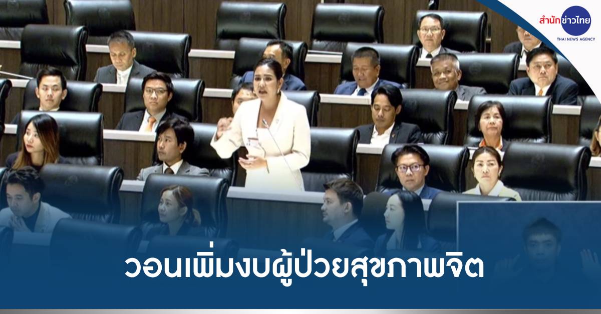 รัฐสภา 20 มิ.ย.-“สิริลภัส” สส.ก้าวไกล วอนรัฐบาล เพิ่มงบจัดสรรโครงการช่วยเหลือผู้ป่วยสุขภาพจิต ก่อนจะสายไป พร้อมยกตัวอย่าง โครงการ 2 ประเภทที่ไม่ควรตัดงบ และเพิ่มการเข้าถึงบริการ เพิ่มการตระหนักรู้ เพิ่มความรู้ความเข้าใจเรื่องสุขภาพจิตให้ประชาชน