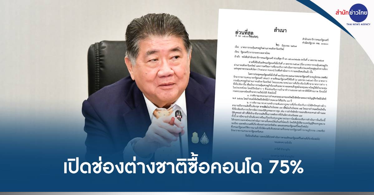 กทม. 21 มิ.ย.-“ภูมิธรรม” สั่ง มท. แก้กฎหมายช่วยอสังหาฯ เปิดช่องต่างชาติซื้อคอนโด 75% จากเดิม 49%