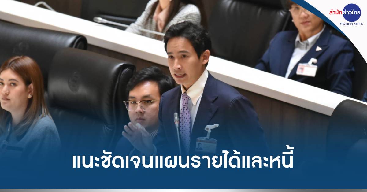 นายพิธา สรุปว่า 5 สิ่งเร่งด่วนที่รัฐบาลต้องทำเกี่ยวกับงบประมาณแผ่นดิน คือ ความชัดเจนเกี่ยวกับแผนรายได้กับแผนหนี้ของประเทศ, แผนการปฏิรูปภาษีอย่างเป็นธรรม, แผนการช่วยเหลือประชาชนที่งบประมาณไม่ครอบคลุม, การเปิดเผยกระบวนการการพิจารณางบต่อสาธารณะ และการปรับกระบวนการงบประมาณตามมาตรฐาน OECD.-317.-สำนักข่าวไทย