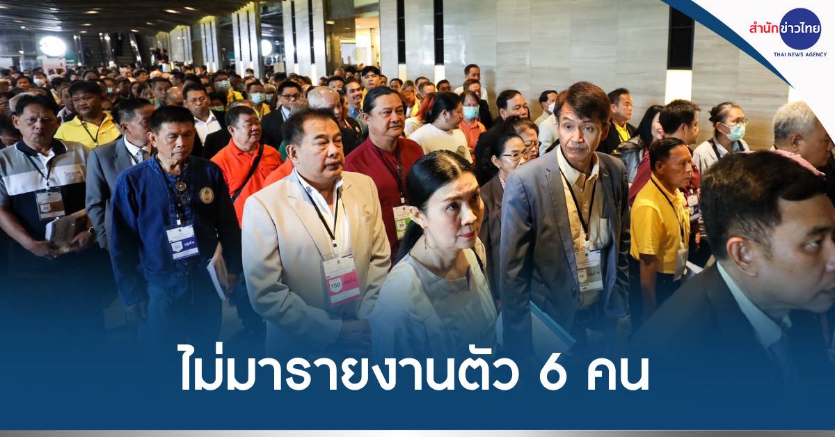 ทั้งนี้ ผู้ที่ผ่านเข้ารอบการคัดเลือกสมาชิกวุฒิสภา (สว.) ระดับประเทศ จำนวน 3,000 ถูกตัดสิทธิ์ไป 5 คน เหลือ 2,995 คน ซึ่งมีผู้ไม่มารายงานตัว รวมจำนวน 6 คน จากทั้งหมด 20 กลุ่มอาชีพ ขณะที่มียอดผู้รับการรายงานตัว ทั้งสิ้น 2,989 คน
