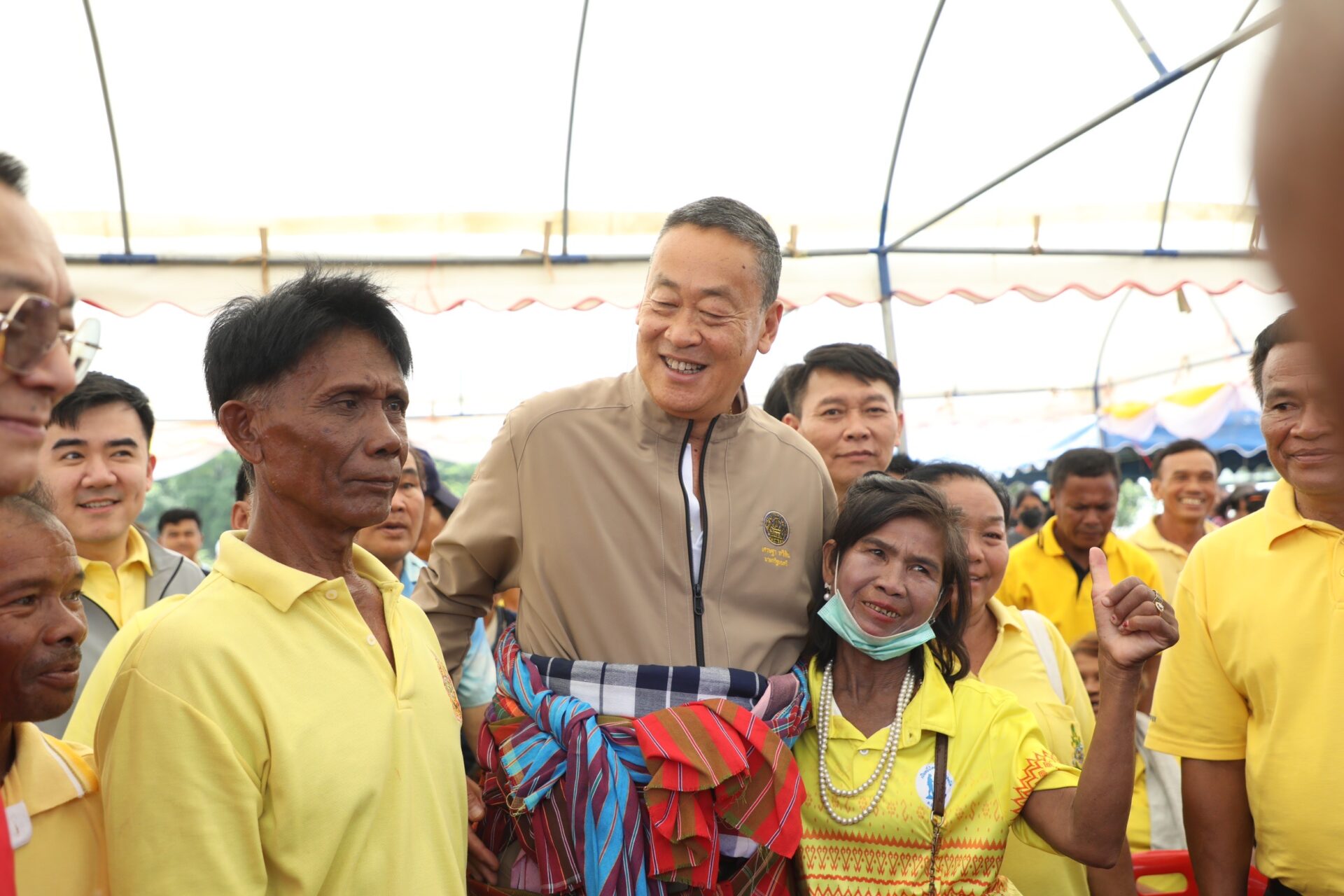 โดยในจุดแรกนี้ เมื่อนายกรัฐมนตรีมาถึงชาวบ้านได้นำผ้าขาวม้ามาผูกเอว นายกรัฐมนตรี และที่ทำให้นายกรัฐมนตรีถึงกับยิ้มคือมีคนนำเสื่อมามอบให้นายกรัฐมนตรีด้วย