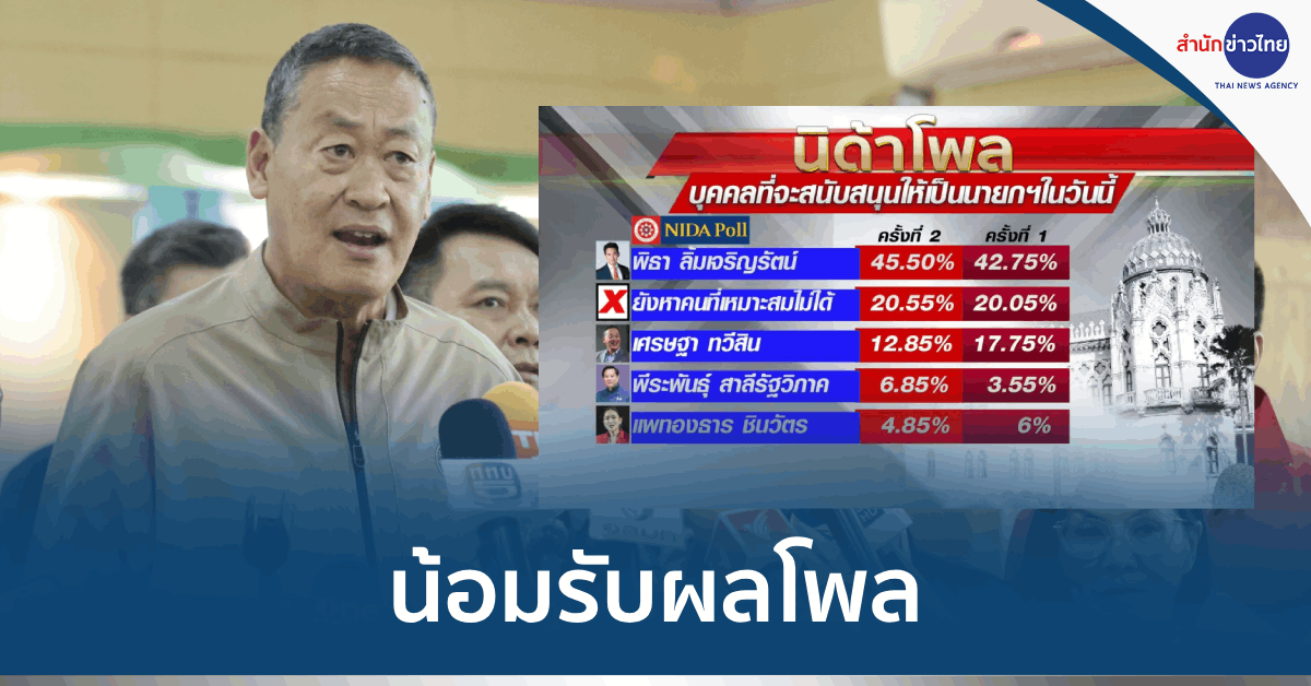 นายเศรษฐา ทวีสิน นายกรัฐมนตรี ให้สัมภาษณ์ภายหลังลงพื้นที่ภาคอีสาน ถึงคะแนนความนิยมผลสำรวจประชาชนของสถาบันบัณฑิตพัฒนบริหารศาสตร์ หรือ นิด้าโพล ที่ล่าสุดคะแนนความนิยมของนายกรัฐมนตรี ยังคงเป็นรองพรรคก้าวไกล และนายพิธา ลิ้มเจริญรัตน์ สส.บัญชีรายชื่อ พรรคก้าวไกล แม้ว่าจะลงพื้นที่มาก และเป็นขวัญใจชาวบ้านก็ตาม จะต้องมีการปรับยุทธศาสตร์อย่างไรบ้าง ว่า ยุทธศาสตร์เรามีการปรับอยู่ตลอดเวลา ไม่ว่าจะมีโพลหรือไม่มีก็ตาม เพราะการลงพื้นที่แต่ละครั้งก็ถือว่าไม่สมบูรณ์แบบ มีทั้งข้อร้องเรียน ข้อเรียกร้อง รวมถึงระยะเวลา ความลึกของการลงพื้นที่ เวลาที่ใช้กับพ่อแม่พี่น้องประชาชน มีอีกหลายปัญหาที่ยังไม่ถูกพูดถึง ทุกครั้งที่มีการลงพื้นที่ เราก็จะกลับไปและนำปัญหามาพูดคุยกัน เพื่อจะทำให้ทุกอย่างดีขึ้น ไม่ใช่แค่ลงพื้นที่อย่างเดียว นโยบายต่างๆ หรือการปรับโครงสร้าง การดูแลปัญหาของพี่น้องประชาชนในแต่ละด้าน เรามีการปรับอยู่ตลอดเวลา โพลก็ถือเป็นส่วนหนึ่งที่ให้ฟีดแบ็กกับเรา