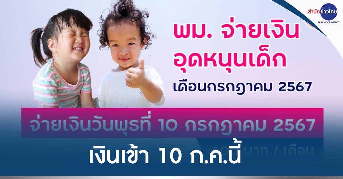 นางรัดเกล้า อินทวงศ์ สุวรรณคีรี รองโฆษกประจำสำนักนายกรัฐมนตรี เปิดเผยว่า กรมบัญชีกลาง และ กระทรวงการพัฒนาสังคมและความมั่นคงของมนุษย์ (พม.) เตรียมโอนเงินช่วยเหลือเยียวยาให้กลุ่มเปราะบาง ทั้งเงินอุดหนุนบุตร เบี้ยยังชีพผู้สูงอายุ และเบี้ยผู้พิการ เข้าบัญชีในวันพุธที่ 10 กรกฎาคม 2567 ยึดหลักเกณฑ์จ่ายเงินเข้าบัญชีทุกวันที่ 10 ของเดือน