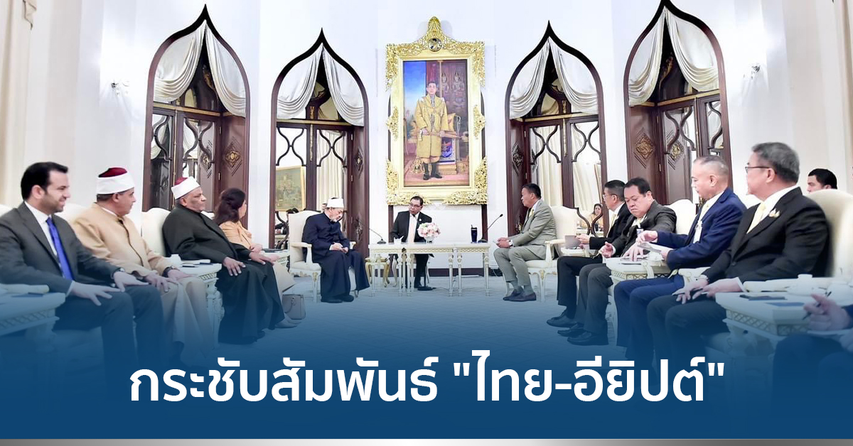 ทำเนียบรัฐบาล 8 ก.ค.-นายกฯ หารือผู้นำสูงสุดทางศาสนาอิสลามอียิปต์ เน้นย้ำความสัมพันธ์ที่ใกล้ชิดในโอกาสครบรอบ 70 ปี ของการสถาปนาความสัมพันธ์ทางการทูต พร้อมกระชับความร่วมมือในด้านการศึกษา และความร่วมมือระหว่างประเทศ
