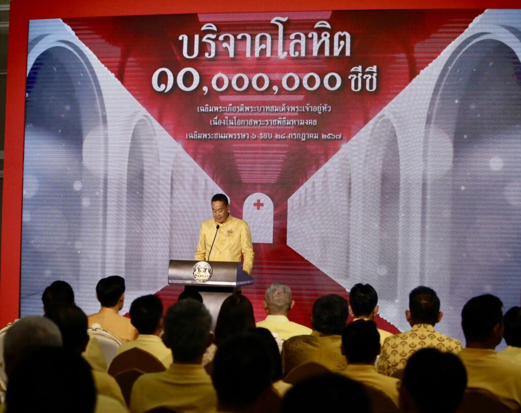 ทำเนียบรัฐบาล 9 ก.ค.-นายกฯ เปิดโครงการบริจาคโลหิต 10,000,000 ซีซี เฉลิมพระเกียรติพระบาทสมเด็จพระเจ้าอยู่หัว เนื่องในโอกาสมหามงคลเฉลิมพระชนมพรรษา 6 รอบ 28 กรกฎาคม 2567 เพื่อถวายเป็นพระราชกุศล