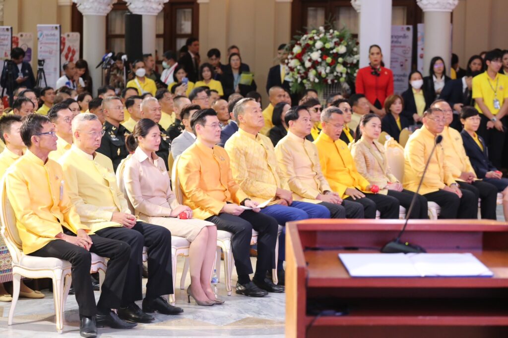 นายเศรษฐา ทวีสิน นายกรัฐมนตรี เป็นประธานพิธีเปิดโครงการ “บริจาคโลหิต 10,000,000 ซีซี เฉลิมพระเกียรติพระบาทสมเด็จพระเจ้าอยู่หัว เนื่องในโอกาสพระราชพิธีมหามงคลเฉลิมพระชนมพรรษา 6 รอบ 28 กรกฎาคม 2567” โดยมี นายพีระพันธุ์ สาลีรัฐวิภาค รองนายกรัฐมนตรีและรัฐมนตรีว่าการกระทรวงพลังงาน นายจักรพงษ์ แสงมณี รัฐมนตรีประจำสำนักนายกรัฐมนตรี นายเสริมศักดิ์ พงษ์พานิช รัฐมนตรีว่าการกระทรวงการท่องเที่ยวและกีฬา นางสาวสุดาวรรณ หวังศุภกิจโกศล รัฐมนตรีว่าการกระทรวงวัฒนธรรม นายสมศักดิ์ เทพสุทิน รัฐมนตรีว่าการกระทรวงสาธารณสุข พลตำรวจเอก เพิ่มพูน ชิดชอบ รัฐมนตรีว่าการกระทรวงศึกษาธิการ และคณะร่วมด้วย