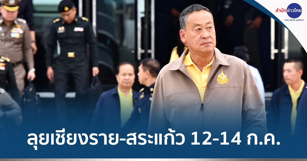 ทำเนียบรัฐบาล 10 ก.ค.-โฆษกรัฐบาลเผย นายกฯ เตรียมตรวจราชการ เชียงราย-สระแก้ว 12-14 ก.ค. นี้ ติดตามการบริหารจัดการน้ำ ระบบชลประทาน หารือแผนพัฒนาจังหวัด