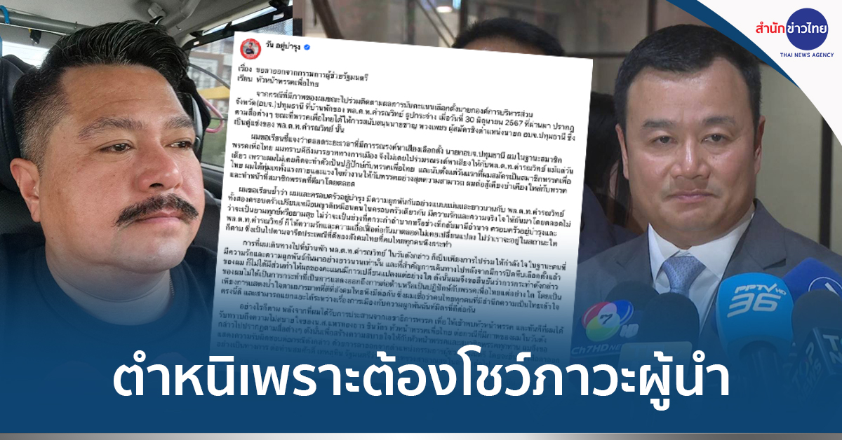 นายสรวงศ์ เทียนทอง เลขาธิการพรรคเพื่อไทย กล่าวถึงกรณีที่นายวัน อยู่บำรุง แจ้งขอลาออกจากกรรมการผู้ช่วยรัฐมนตรี เพื่อแสดงความรับผิดชอบกรณีมีภาพไปร่วมติดตามผลการนับคะแนนเลือกตั้งนายกองค์การบริหารส่วนจังหวัด (อบจ.) ปทุมธานี ที่บ้านพักของ พล.ต.ท.คำรณวิทย์ ธูปกระจ่าง เมื่อวันที่ 30 มิ.ย. ว่า เหตุผลที่ให้ในการลาออก ฟังดูแล้วค่อนข้างรุนแรง ซึ่งความจริงวานนี้ (9 ก.ค.) นางสาวแพทองธาร ชินวัตร หัวหน้าพรรคเพื่อไทย ได้เชิญนายวัน มาพูดคุย ถือเป็นสิ่งที่คนเป็นหัวหน้าพรรคต้องตัดสินใจในการปกครองคนและองค์กร และเห็นว่านายวันต้องเข้าใจเหตุผลของนางสาวแพทองธาร ที่ต้องตำหนิ และจริงๆ แล้ว ไม่ได้ตำหนิรุนแรง ก็เป็นการพูดตรงไปตรงมา
