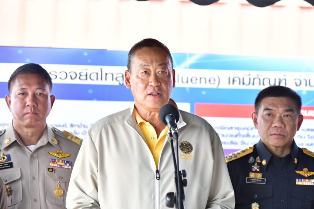 ชลบุรี 12 ก.ค.-นายกฯ เป็นประธานการแถลงตรวจยึด “โทลูอีน” สารตั้งต้นยาเสพติดล็อตใหญ่กว่า 90 ตัน ใช้ผลิตไอซ์ -โคเคน มูลค่ากว่าหมื่นล้าน กำชับตำรวจดูแลสวัสดิการเจ้าหน้าที่ หลังเกิดเหตุปะทะบุกจับที่เชียงดาว เจ้าหน้าที่เสียชีวิต 1 นาย