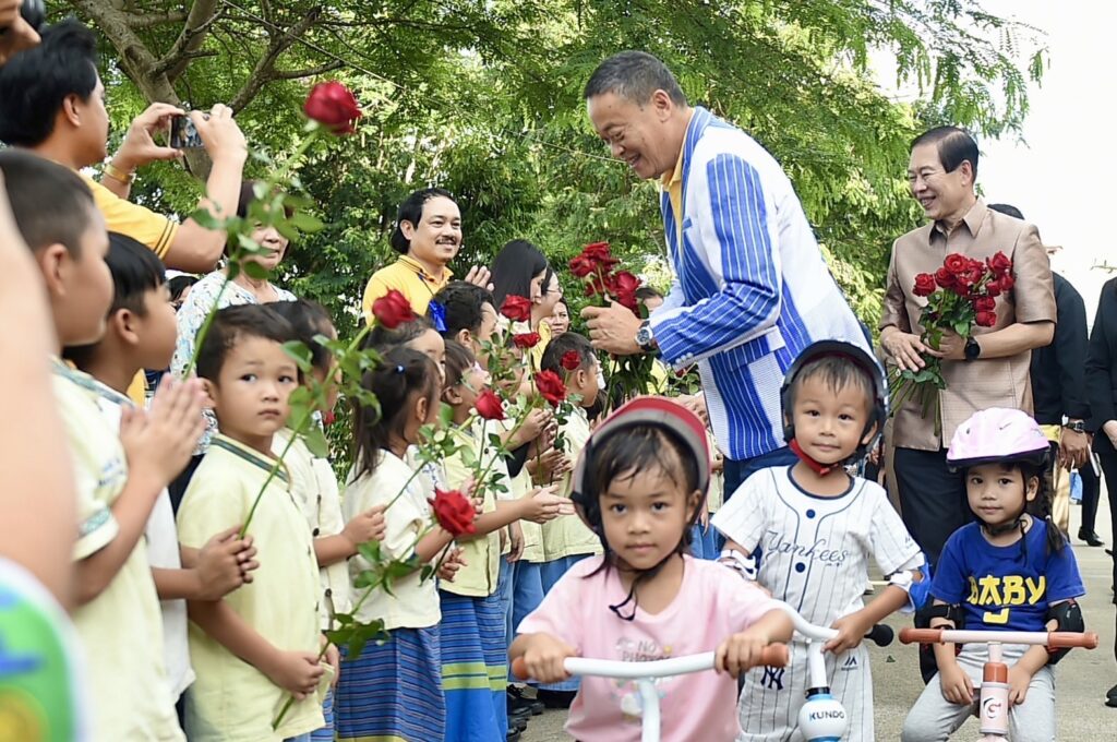 ต่อจากนั้นเวลา 17.45 น. นายกฯ ได้เดินทางมายังโรงเรียนเทศบาล 8 บ้านใหม่ เทศบาลนครเชียงราย โดยชาวบ้านที่มารอต้อนรับได้มอบเสื้อสูทชาติพันธุ์ประยุกต์สีฟ้าขาว ซึ่งนายกฯได้ถอดเสื้อแจ็คเก็ตที่สวมใส่อยู่ และสวมใส่สูทที่ชาวบ้านมอบให้ทันที ก่อนที่จะรับมอบดอกไม้จากครู และเด็กอนุบาล ก่อนร่วมรับชม และร่วมให้กำลังใจการแข่งขันฟุตบอลนัดกระชับมิตรระหว่างโรงเรียนเทศบาล 5 เด่นห้า และเทศบาลเทศบาล 6 นครเชียงราย