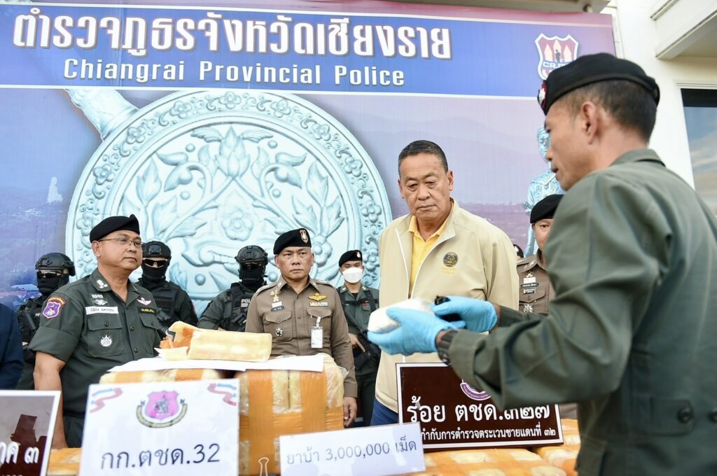 โดยในเวลา 17.05 น. นายกฯ และคณะ เดินทางถึงท่าอากาศยานแม่ฟ้าหลวง จ.เชียงราย โดย มีสส.เชียงราย พรรคเพื่อไทย คือ น.ส.ปิยะรัฐชย์ ติยะไพรัช และ น.ส.วิสาระดี เตชะธีราวัฒน์ ให้การต้อนรับ เมื่อเดินทางมาถึงนายกฯ ได้นั่งรถตู้เลกซัส สีดำ ทะเบียน กบ 6868 เชียงราย มายังสถานีตำรวจภูธรเมืองเชียงราย เพื่อมาให้กำลังใจเจ้าหน้าที่ และรับฟังรายงานจากเจ้าหน้าที่ตำรวจตระเวนชายแดน กองร้อยตชด.327 ที่ได้ตรวจยึดยาเสพติดรายสำคัญเมื่อวันที่ 11 ก.ค. ที่ผ่านมา บริเวณพื้นที่ป่าชุมชน ข้างถนนหมายเลข 1299 เด่นห้า – ดงมะดะ บ.ปงคึก ต.แม่กรณ์ อ.เมือง จ.เชียงราย โดยได้ตรวจยึดยาเสพติดให้โทษประเภทหนึ่ง (ยาบ้า) จำนวน 3 ล้านเม็ด รถยนต์ 3 คัน และรถจักรยานยนต์ 1 คัน นอกจากนี้เจ้าหน้าที่ยังได้รายงานสถานการณ์ราคายาเสพติด โดยเฉพาะยาบ้าที่ในขณะนี้มีราคาถูกทำให้มีการระบาดเพิ่มมากขึ้นเป็นสองเท่า
