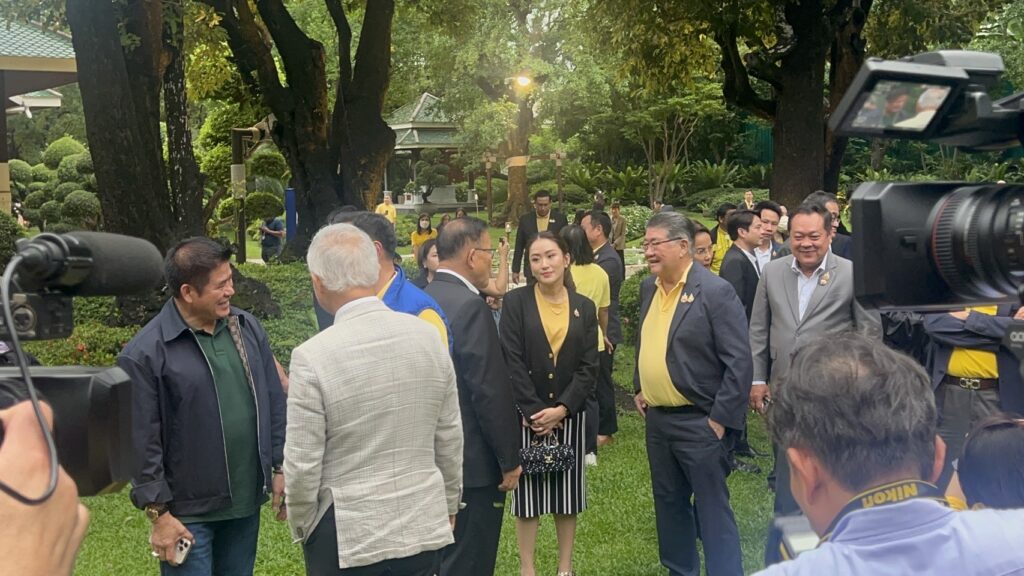 บ้านปาร์คนายเลิศ 15 ก.ค.-ชื่นมื่น งานเลี้ยงพรรคร่วมรัฐบาล พปชร.เป็นเจ้าภาพ ด้านนายกฯ ทำสัญลักษณ์มือรูปหัวใจประกบมือ “อนุทิน-ธรรมนัส” โชว์สัมพันธ์แนบแน่น ขณะ “ธรรมนัส” แจง “บิ๊กป้อม” ไม่ร่วมงาน Dinner พรรคร่วมฯ เหตุเป็นข้อตกลงตั้งแต่ตั้งรัฐบาล มอบ “พัชรวาท” เป็นเจ้าภาพงานเลี้ยง ย้ำดูแลงานเลี้ยงให้ดี แต่วันนี้ “บิ๊กป๊อด” ป่วย