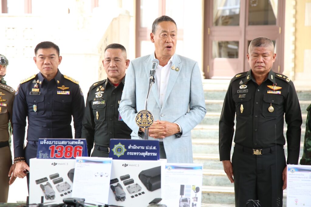นายเศรษฐา ทวีสิน นายกรัฐมนตรี เป็นประธานในพิธีมอบอุปกรณ์ป้องกัน และตอบโต้กลุ่มผู้ค้ายาเสพติด แก่สำนักงานตำรวจแห่งชาติ และกองบัญชาการกองทัพบก ที่บริเวณทางเชื่อมตึกไทยคู่ฟ้าและตึกสันติไมตรี ทำเนียบรัฐบาล ประกอบด้วย รถโฟร์วิล ไนท์วิชั่น โดรน แผงโซลาเซล พร้อมชมการสาธิตการบินโดรน ซึ่งใช้ในภารกิจปราบยาเสพติด